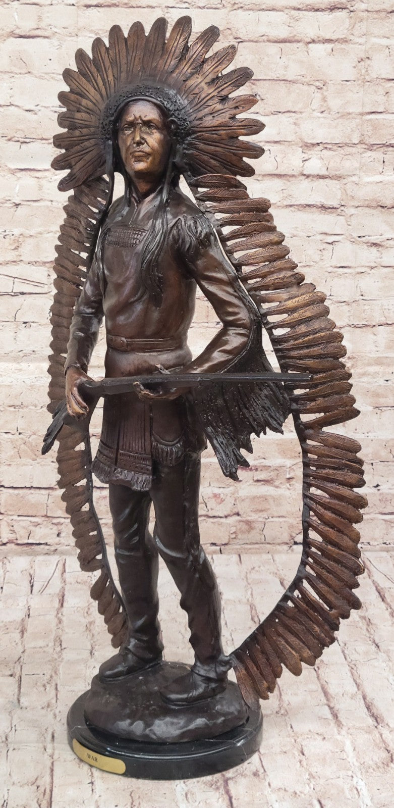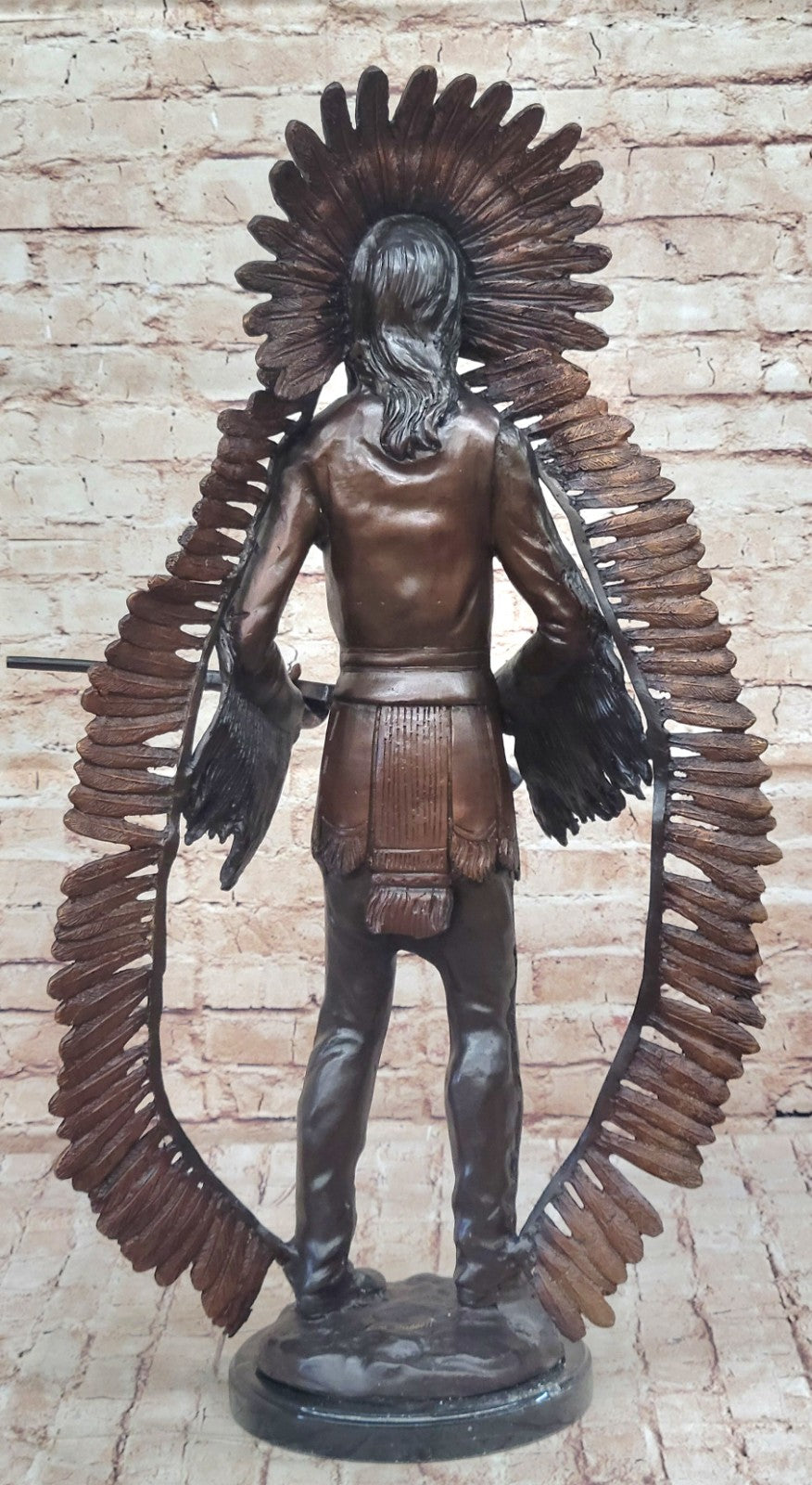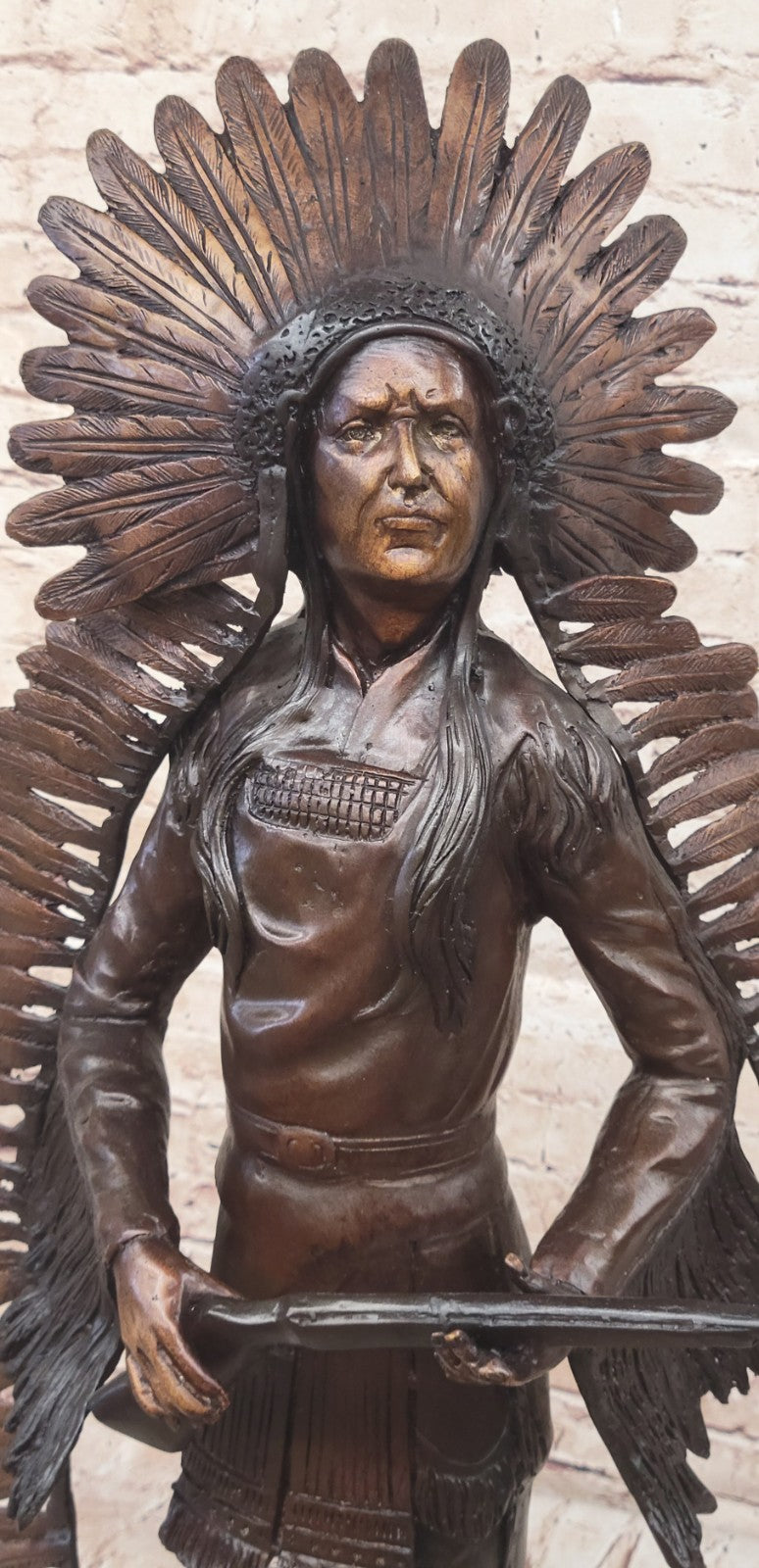 Exquisitely crafted using the revered "Lost Wax Method," this bronze sculpture captures the essence of the Native American Indian's strength and resilience, embodying the timeless spirit of a culture deeply rooted in tradition and honor. The two-toned brown patina, accented with hints of green, enhances the sculpture's visual depth and texture, adding a touch of antiquity and character to the piece. With the distinguished signature of the renowned artist C.M. Russell, this sculpture stands as a testament to the artist's dedication to preserving the cultural legacy of the Native American Indian. A remarkable addition to any art collection or cultural display, this sculpture serves as a powerful reminder of the rich history and heritage of the indigenous peoples of North America, encapsulating the enduring spirit and dignity of the Native American Indian.