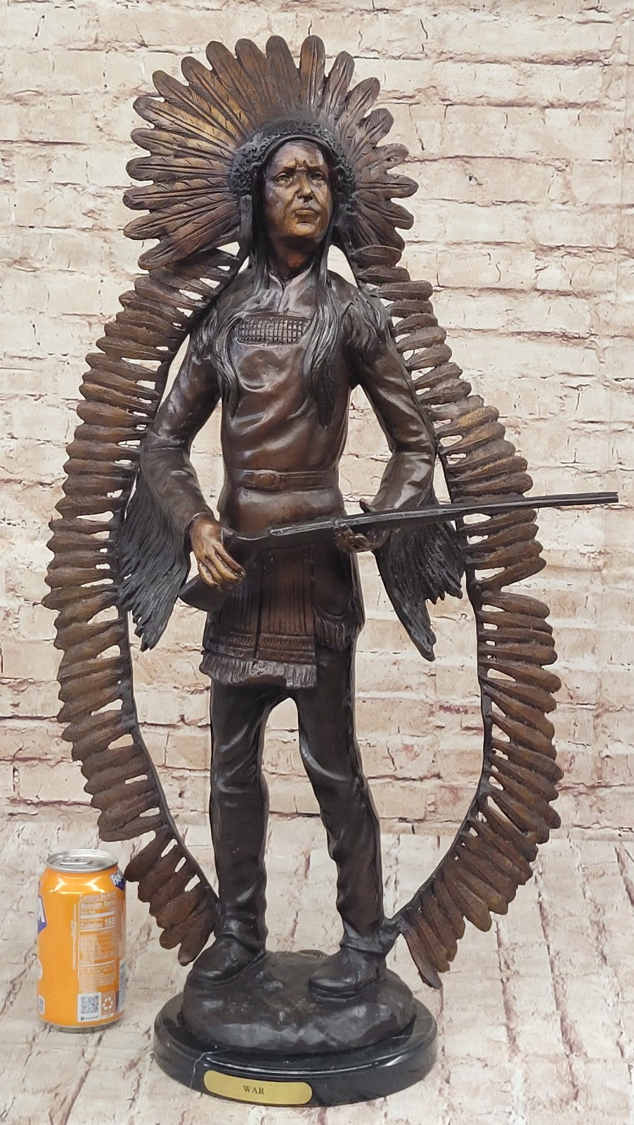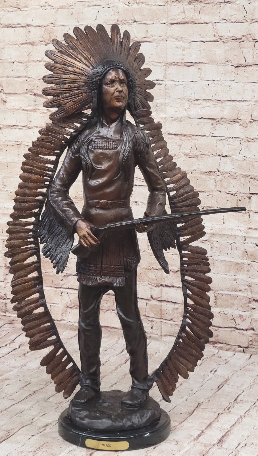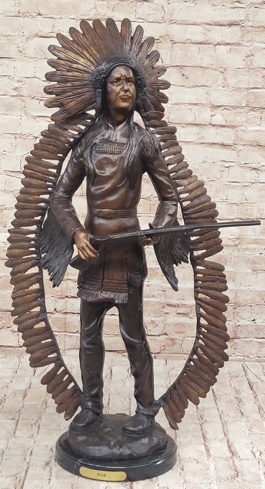 Exquisitely crafted using the revered "Lost Wax Method," this bronze sculpture captures the essence of the Native American Indian's strength and resilience, embodying the timeless spirit of a culture deeply rooted in tradition and honor. The two-toned brown patina, accented with hints of green, enhances the sculpture's visual depth and texture, adding a touch of antiquity and character to the piece. With the distinguished signature of the renowned artist C.M. Russell, this sculpture stands as a testament to the artist's dedication to preserving the cultural legacy of the Native American Indian. A remarkable addition to any art collection or cultural display, this sculpture serves as a powerful reminder of the rich history and heritage of the indigenous peoples of North America, encapsulating the enduring spirit and dignity of the Native American Indian.