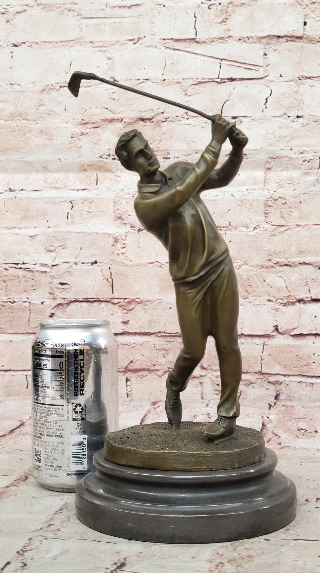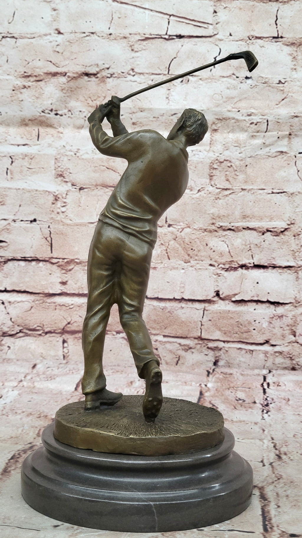 Donned in his cherished chaps and the lucky shirt that has seen countless rounds, the golfer's attire reflects his dedication to the game. His focused expression mirrors the intense concentration required to outdo his own personal best. The bronze sculpture is a symphony of fine details, a result of the meticulous "Lost Wax Method" that breathed life into this masterpiece. The warm brown patina finish adds depth and character, casting shadows that echo the undulating terrain of the course.