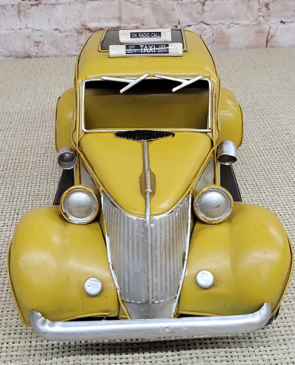 Decorate for any table, desk, or shelf in sporty fashion with Our Rustic 1930 New York Taxi (Yellow Checker) . Featuring a rustic iron frame, this charming vintage Classic Car includes a fine detail's. The Yellow metal Exterior are in natural colors. For more than 20 years, European Finery has been providing high quality sculpture, accessories, and decor for any room for its customers' homes. Based in New York area, We grown to become one of the largest importers and wholesalers of home decor and hand made sculptures in the country. Whether you're looking for accent Sculpture, wall decor, vintage Toys, or just about any outdoor lifestyle sculpture , We Became a proven and trustworthy name that has become synonymous with superiority.