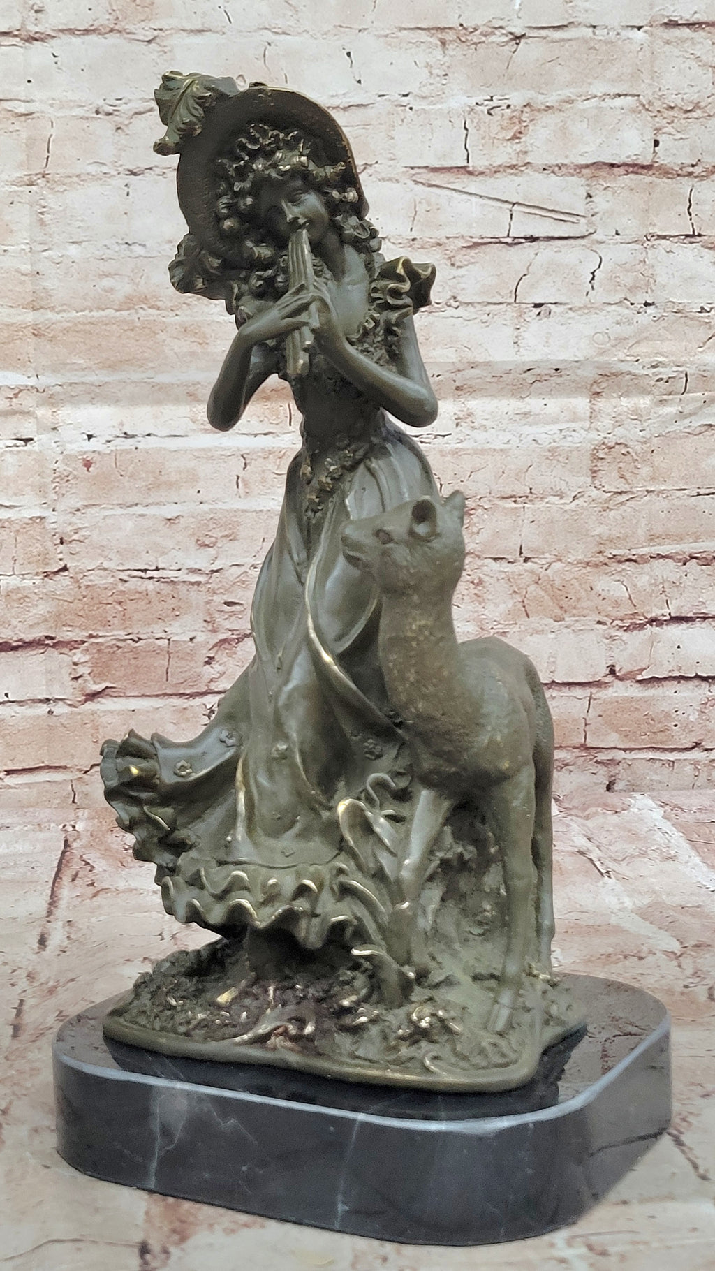 Handcrafted using the traditional lost wax method, this piece showcases remarkable craftsmanship and precision. Every fold of fabric, strand of hair, and texture on the deer’s fur has been meticulously sculpted, reflecting the skill involved in its creation. The rich brown patina enhances these details, giving the sculpture depth and a timeless warmth that will endure for generations.