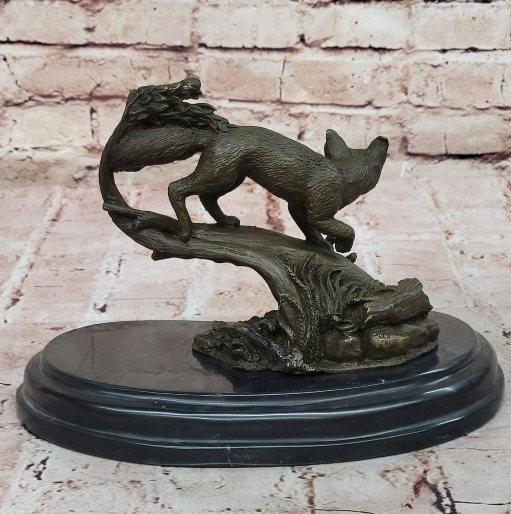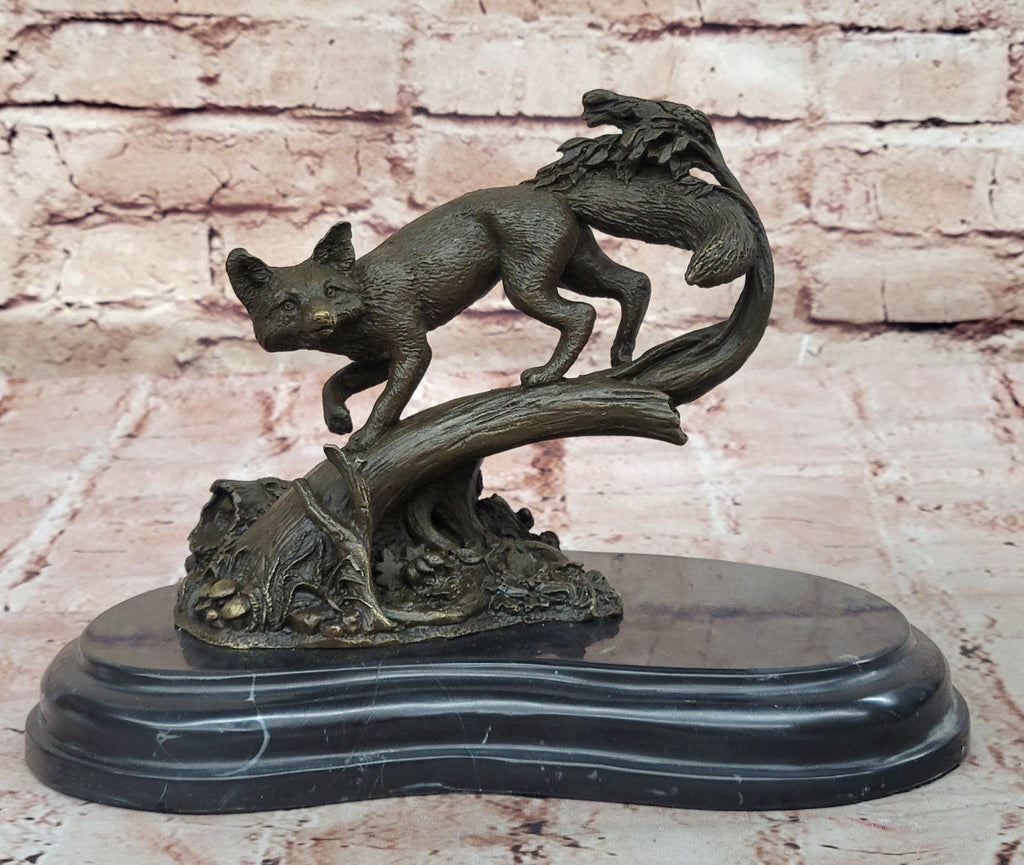 Crafted using the lost-wax method, a technique known for its precision and ability to capture intricate details, the sculpture showcases the artist's dedication to portraying the essence of this cunning creature. The antique brown patina finish adds a timeless quality, enhancing the overall aesthetic and giving the sculpture a sense of antiquity.