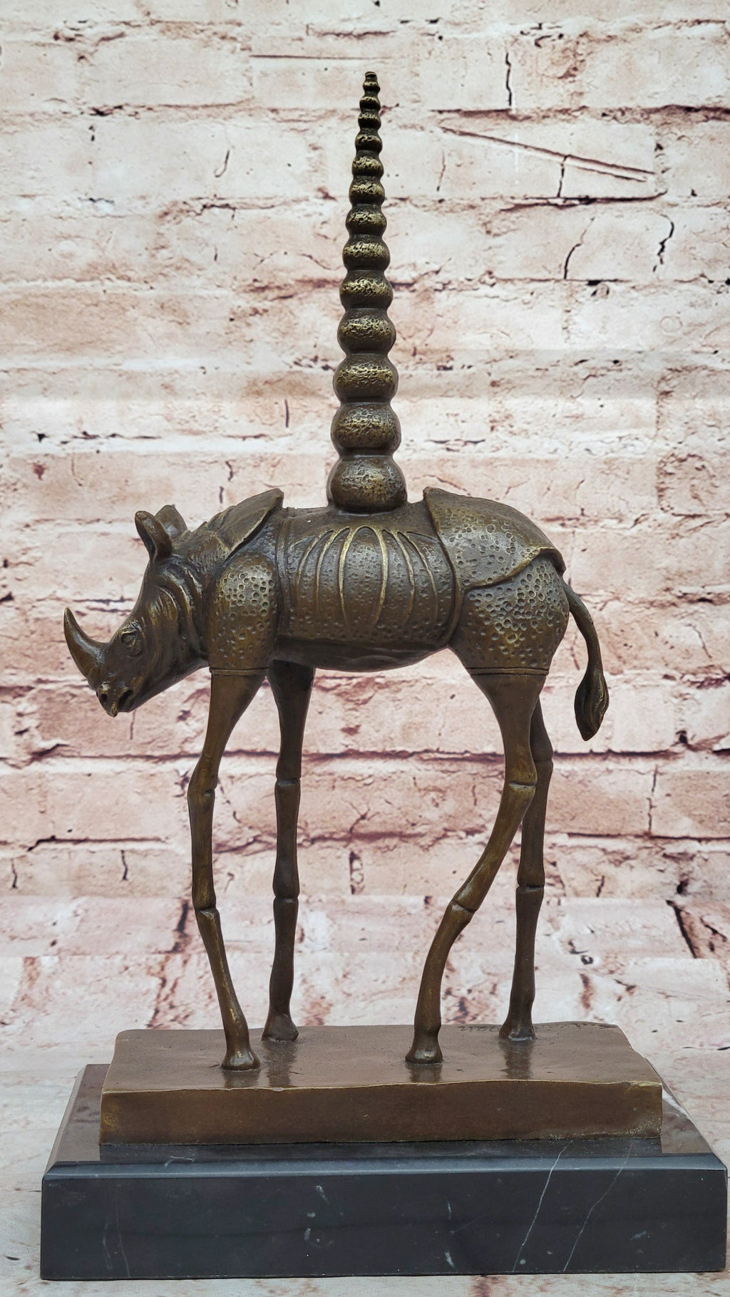 Cast using the traditional "lost-wax" method and mounted on a sturdy base, this sculpture is a true work of art that will add a touch of surrealism to any home or office décor. Whether you're a collector of modern art or simply appreciate the beauty of Dalí's vision, this Cosmic Rhinoceros sculpture is sure to impress.