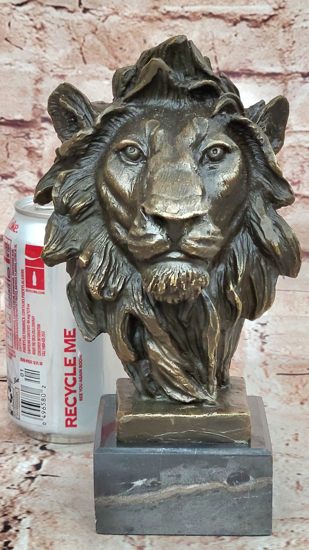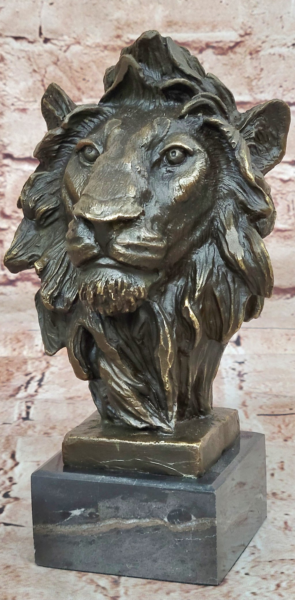 The presentation of the lion bust is nothing short of exquisite, radiating a strong sense of pride and regality. The attention to detail is evident, with each feature of the lion expertly rendered, from its piercing eyes to its expressive facial expression. Cast using the renowned "Lost Wax Method," this sculpture embodies the dedication and skill of the artist. The brown patina finish adds warmth and depth to the bronze, creating a striking contrast against the marble base on which it is mounted.