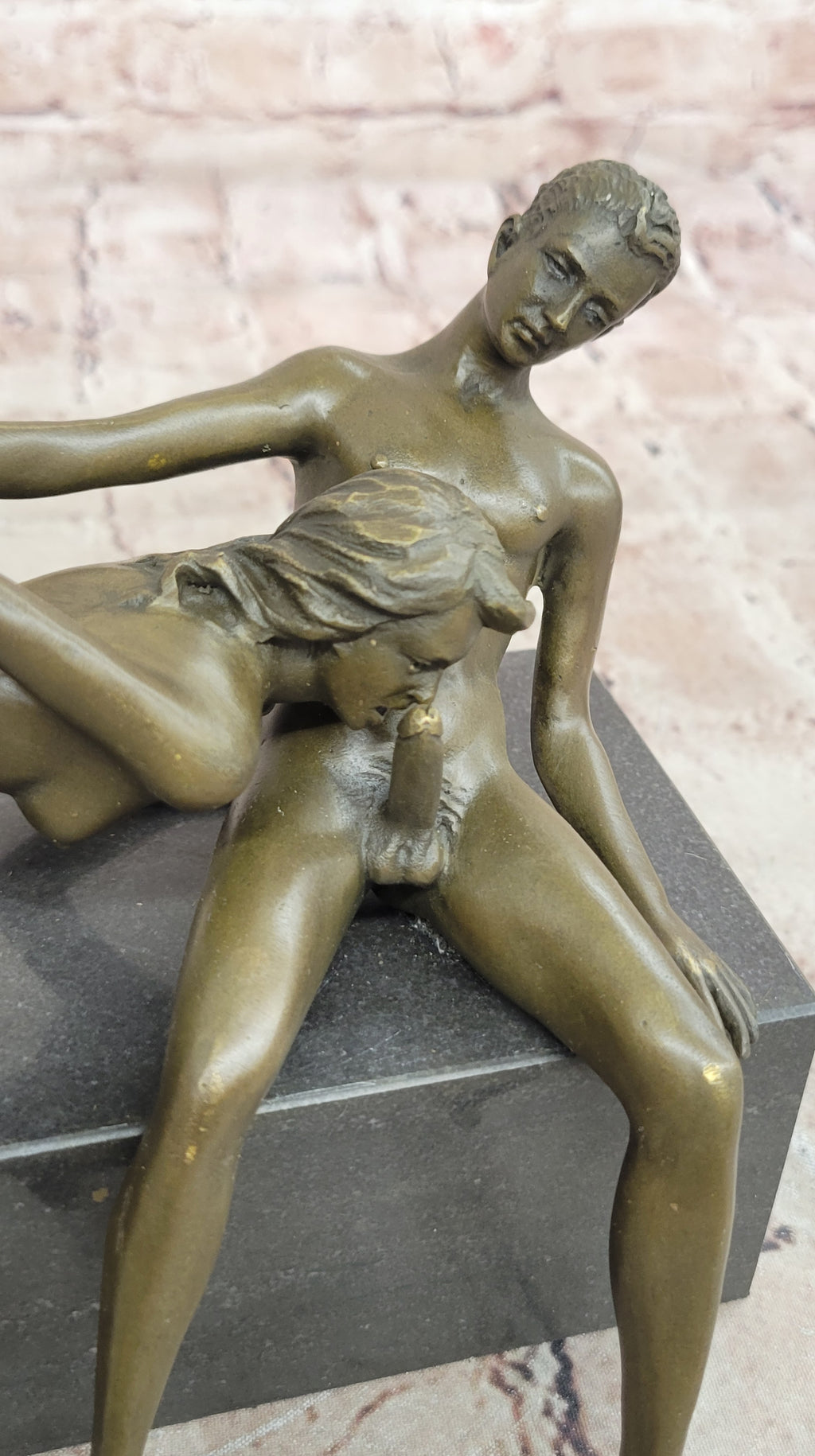 While this sculpture depicts an erotic scene, it is done tastefully and with artistic integrity. It serves as a celebration of love, passion, and human connection. This remarkable piece by renowned artist Mavchi is a stunning addition to any art collection or as a focal point in any space, evoking a sense of sensuality and beauty.