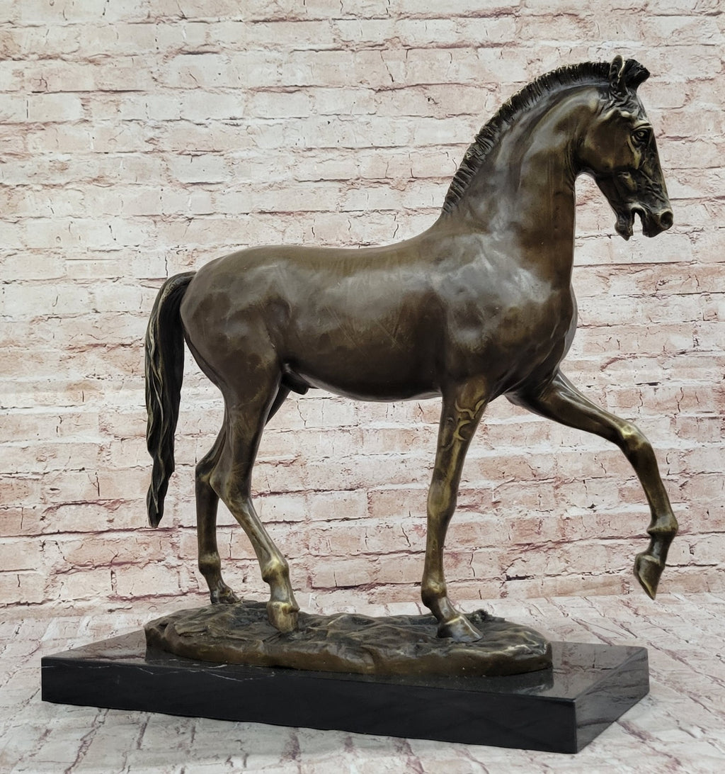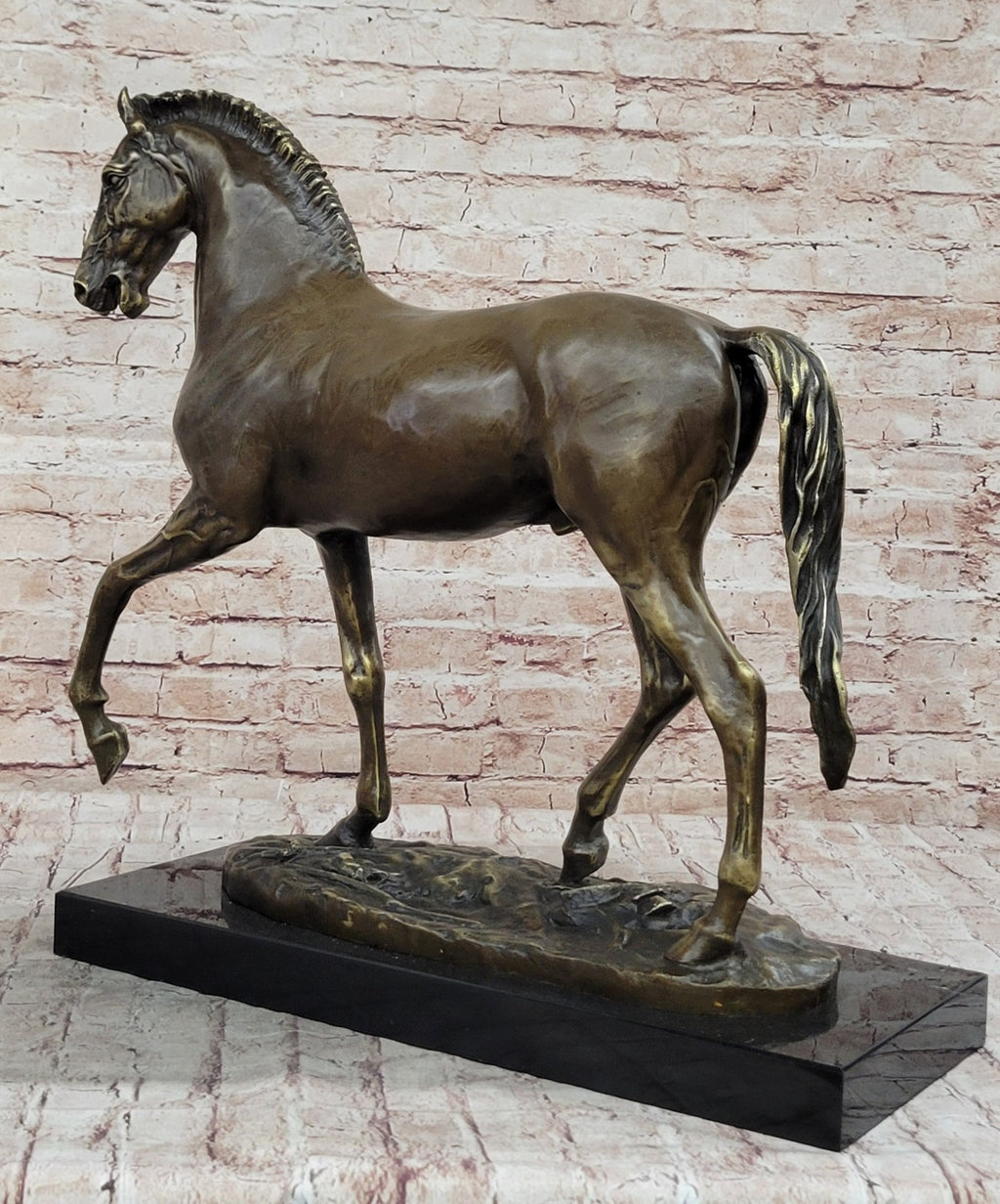 Set upon a base adorned with lifelike grassy patches, the sculpture immerses the viewer in the serene beauty of a natural setting. Crafted with meticulous detail using the revered "Lost Wax Method," this bronze masterpiece features a nuanced two-tone brown patina that captures the subtle textures of both mare and foal. Handmade and signed by the esteemed artist P.J Mene, this sculpture is an ideal gift for those who appreciate the elegance and vitality of these majestic creatures.