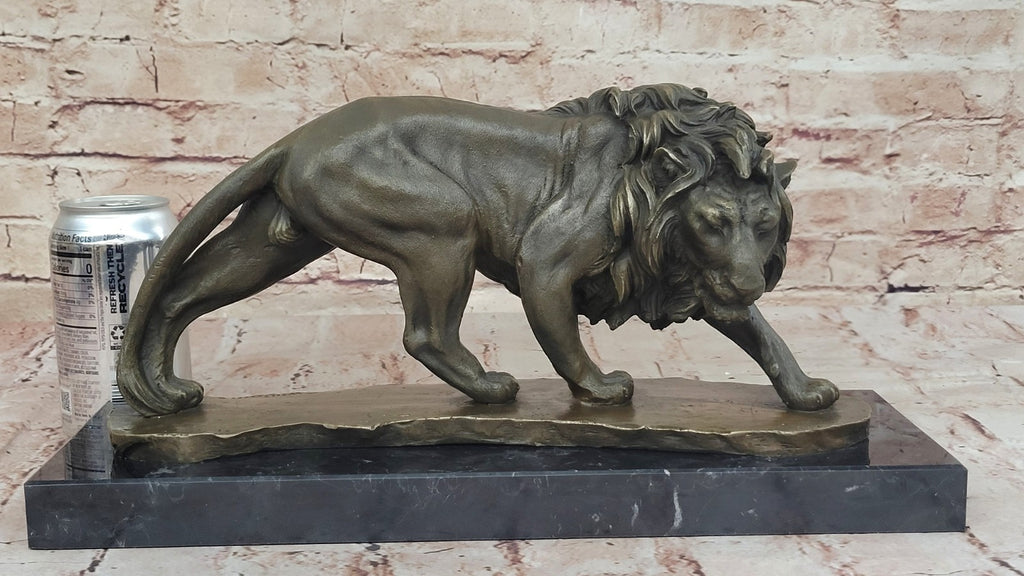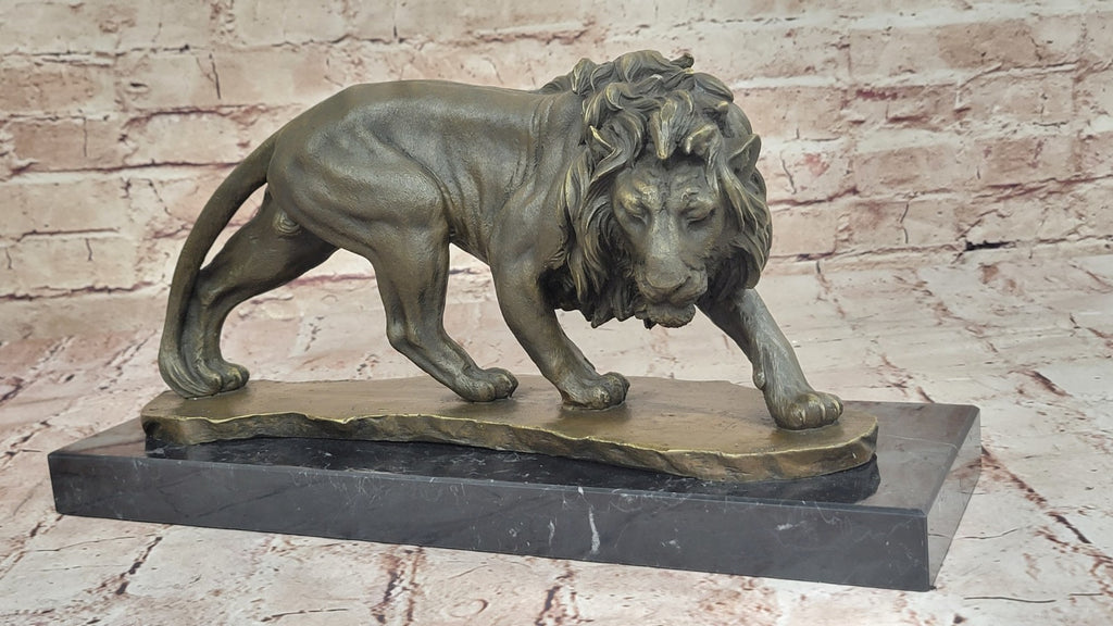 Fashioned with unparalleled skill and precision, this exceptional sculpture boasts a captivating two-toned brown patina, meticulously embellished with glimmering gold highlights that infuse the lion's mane with an enchanting radiance. Crafted using the revered "Lost Wax Method," the sculpture stands as a testament to the timeless artistry and enduring durability of the craft. Perched elegantly atop a sleek black marble base, this masterpiece proudly bears the signature of the esteemed artist Williams, adding an extra layer of prestige and authenticity to this mesmerizing work of art. With its meticulous craftsmanship and faithful replication of the lion's regal essence, this sculpture serves as a stunning homage to the awe-inspiring allure and dignified grace of the jungle's most iconic and formidable creature.