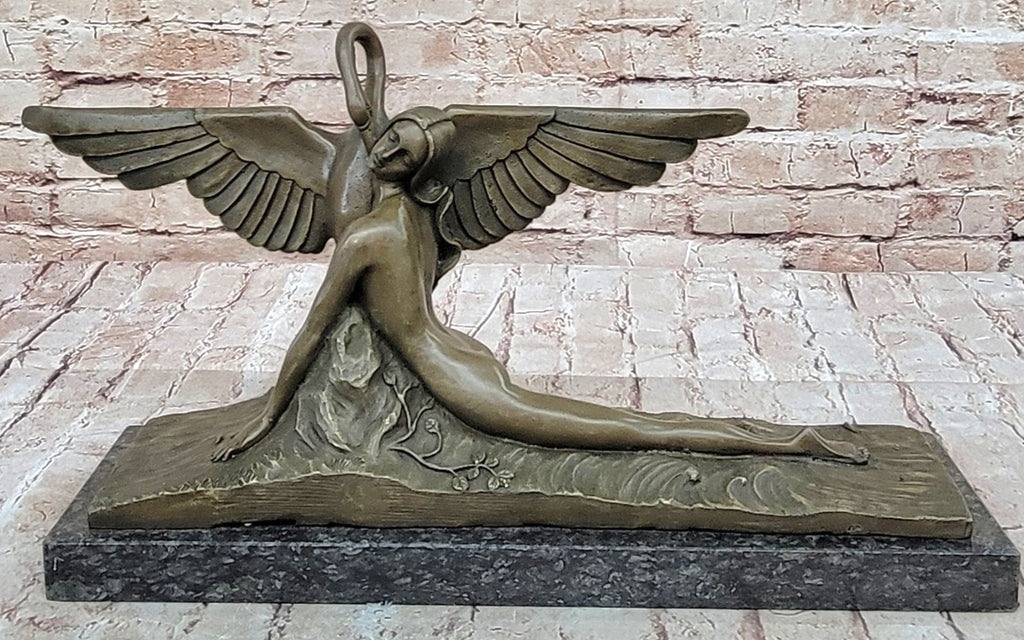 The intricate details and impeccable craftsmanship of this handmade bronze sculpture are truly remarkable. It was created using the early technique of lost-wax casting, a method that has been employed for centuries to capture the fine details and nuances of the human form. The sculpture is adorned with a rich brown patina finish, adding depth and character to the piece. Mounted upon a black marble base, it exudes a sense of elegance and solidity, further enhancing its visual appeal.