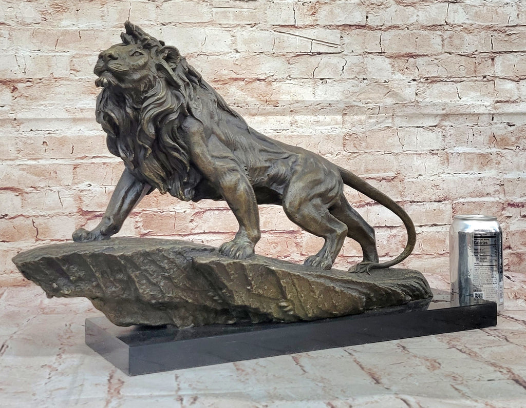 Crafted with meticulous attention to detail, this handmade bronze sculpture is a true testament to the artistry of the lost-wax casting method. The intricate textures of the lion's fur, the intensity of its expression, and the sense of motion as it climbs the cliff are all masterfully rendered. A rich brown patina finish both protects and enhances the sculpture's timeless beauty, ensuring its endurance for generations to come. Resting upon a dignified black marble base, this artwork bears the signature of the esteemed artist Barye, a mark of quality and exceptional craftsmanship.