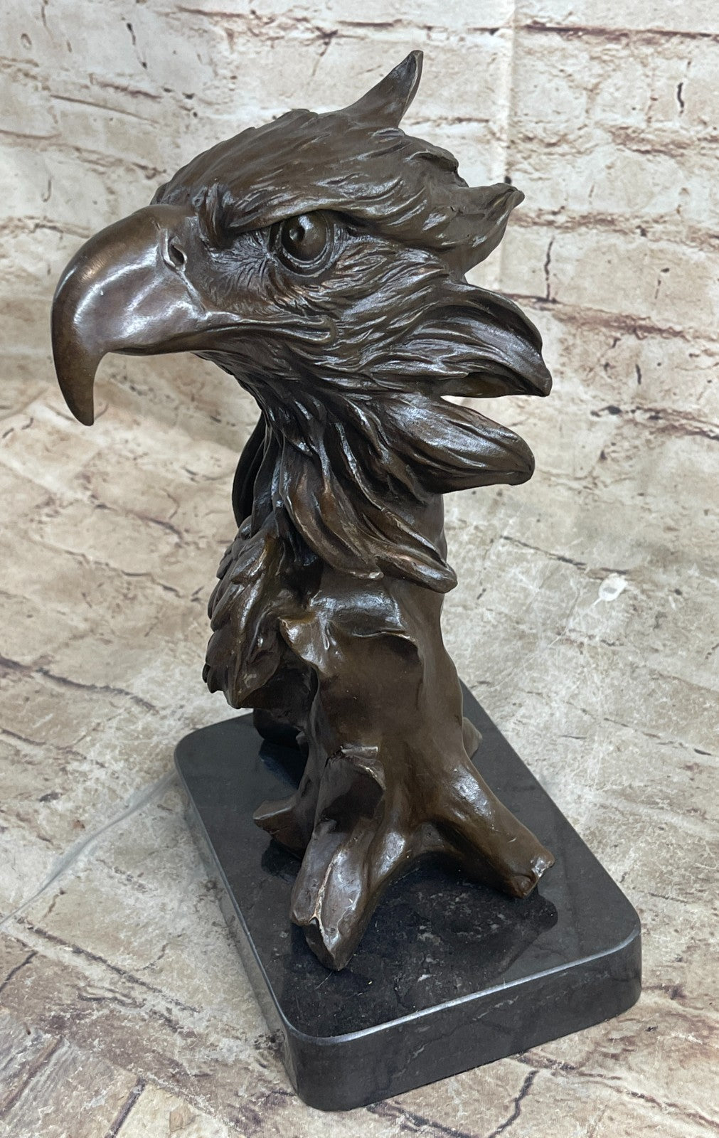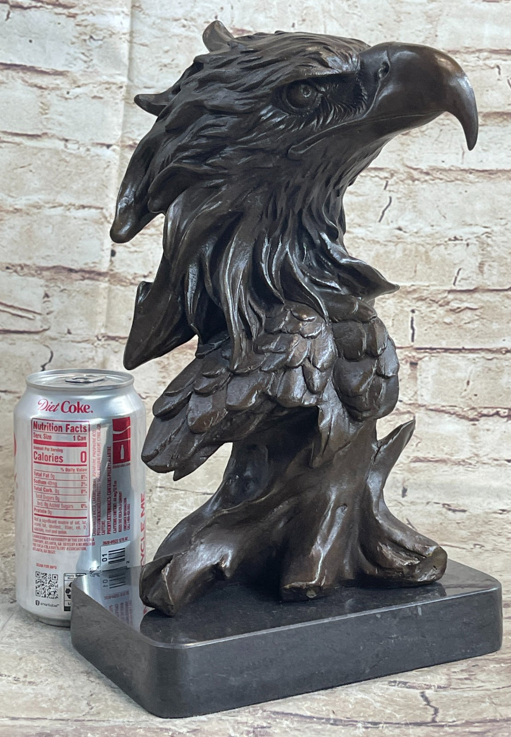 Crafted using the ancient technique of lost-wax casting, this handmade bronze sculpture captures the intricate details of the eagle's feathers, stained with a brown patina tarnish. Mounted on a sleek black marble base, it stands as a testament to the craftsmanship and artistic vision of the renowned sculptor, Milo. With its profound symbolism and timeless beauty, this sculpture is a captivating addition to any space, invoking a sense of awe and inspiring a connection with the spiritual realm and the natural world.