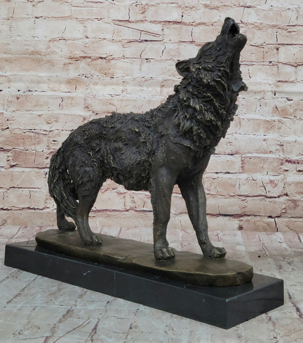 Wolves are celebrated for their strong social bonds, forming close-knit family units characterized by unwavering loyalty and support. As the pack's leader, this Wolf stands tall, beckoning its kin to gather with a resounding howl. The meticulous detailing of the sculpture allows you to feel the rugged texture of its fur, adding to its authenticity. The sculpture beautifully captures the raw emotion and spirit of this mesmerizing scene, from the subtle pull of its ribcage to the belly-deep resonance of the howl.