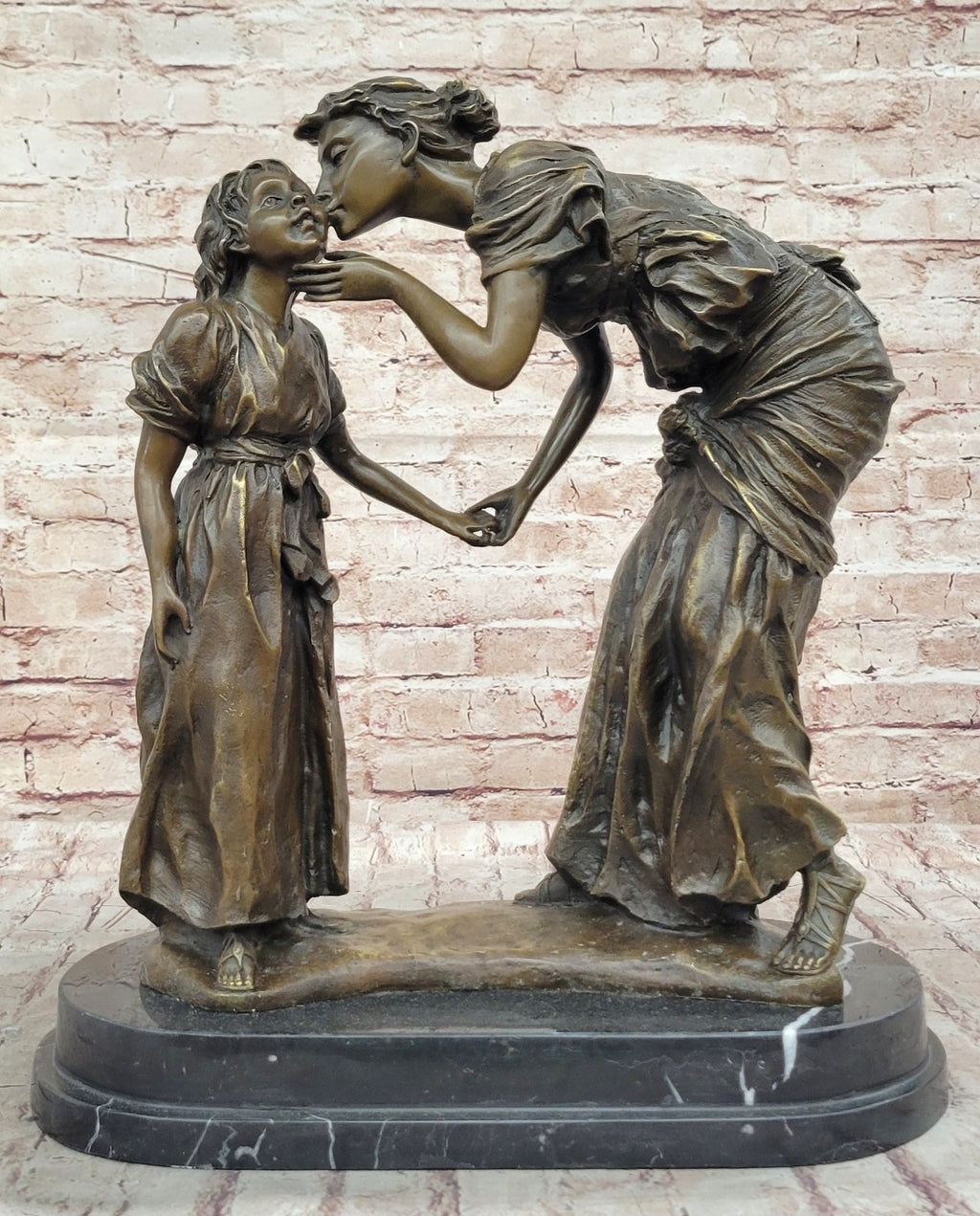 Whether you are a collector of fine art or simply appreciate the beauty of the mother-child bond, this sculpture is a true masterpiece that speaks to the heart. It serves as a reminder of the unconditional love, protection, and support that a mother provides to her child. With the artist's signature, this sculpture bears the mark of quality and craftsmanship.