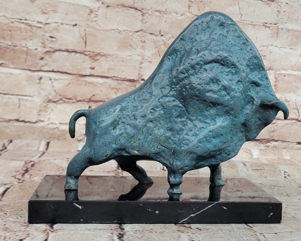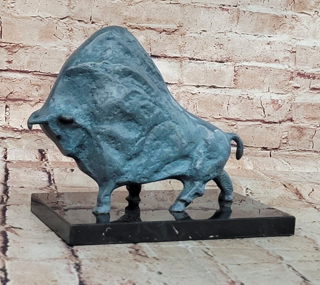 This impressive sculpture rests on a sleek black marble base with a striking green patina, enhancing its visual appeal and creating a stunning contrast. The combination of the majestic bull and the elegant base makes this artwork an eye-catching centerpiece. As with all our bronze products, this masterpiece is meticulously crafted using the lost-wax casting technique, guaranteeing its authenticity and lasting beauty. For art lovers, admirers of Picasso's masterpieces, and collectors of modern art objects, this bronze sculpture is an invaluable addition to any collection. Embrace the power and grace of the bull symbol with this extraordinary piece of art.