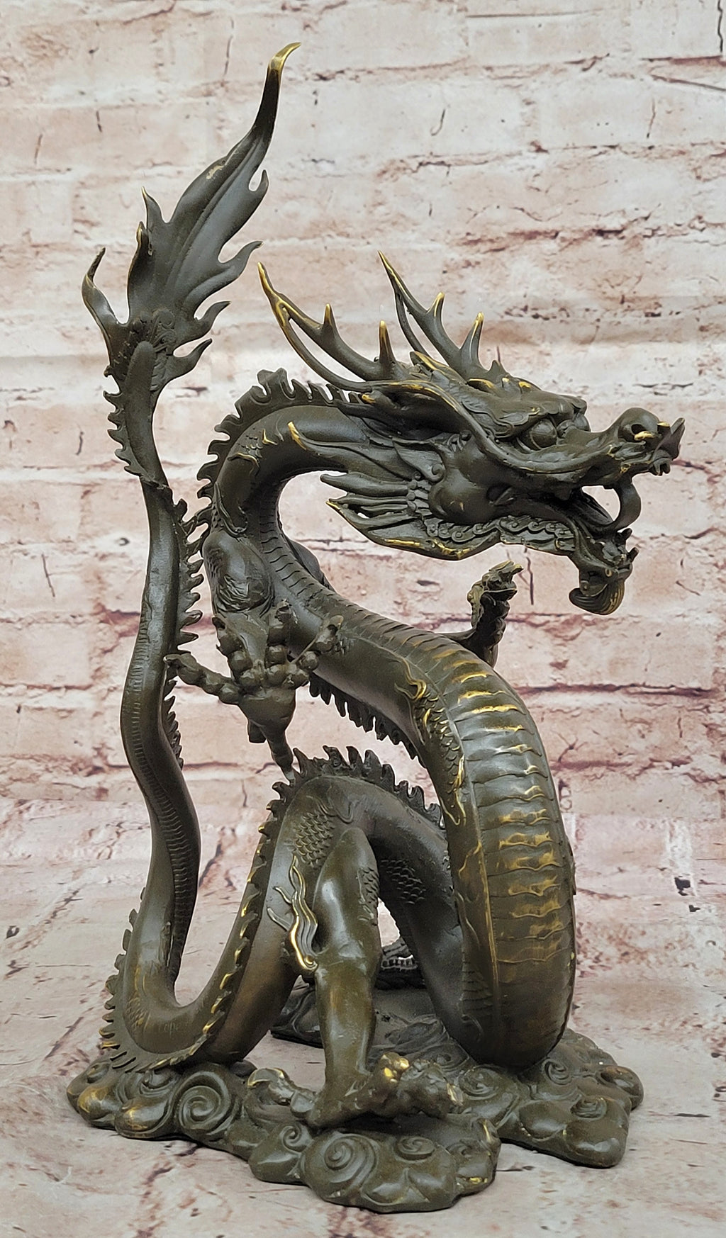 Handmade using the traditional lost wax casting method, the sculpture is crafted in genuine bronze and finished with a rich brown patina. This classic finish accentuates the deep textures and dramatic contours of the dragon’s body, wings, and tail, bringing the creature’s legendary features vividly to life. Each piece is signed by the artist and individually numbered, making it a collectible work of art with lasting value.