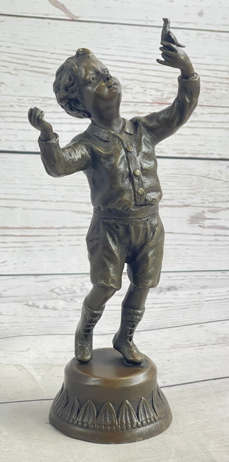 Embrace the serenity and beauty of nature with this exquisite bronze sculpture. Whether displayed in a home, office, or garden, it serves as a gentle reminder of the innocence and wonder that can be found in simple moments of connection. Let this artwork bring a touch of tranquility and the melodies of nature into your space, evoking a sense of harmony and joy.