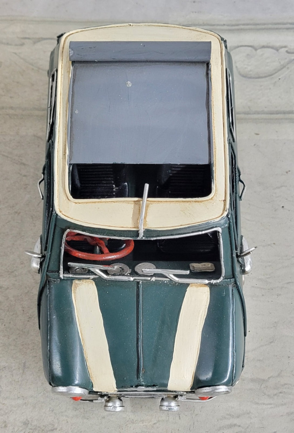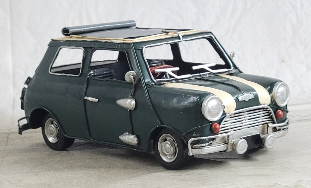 Decorate for any table, desk, or shelf in sporty fashion with Our Rustic 1960 Mini Copper car. Featuring a rustic iron frame, this charming vintage Classic Car includes a fine detail's. The black metal seat are finished in natural colors. For more than 20 years, European Finery has been providing high quality sculpture, accessories, and decor for any room for its customers' homes. Based in New York area, We grown to become one of the largest importers and wholesalers of home decor and hand made sculptures in the country. Whether you're looking for accent Sculpture, wall decor, vintage Toys, or just about any outdoor lifestyle sculpture , We Became a proven and trustworthy name that has become synonymous with superiority.