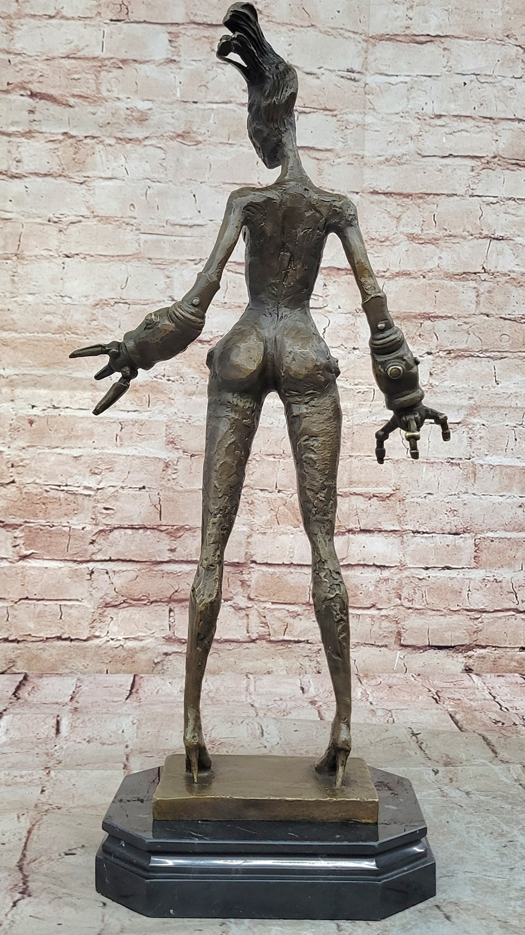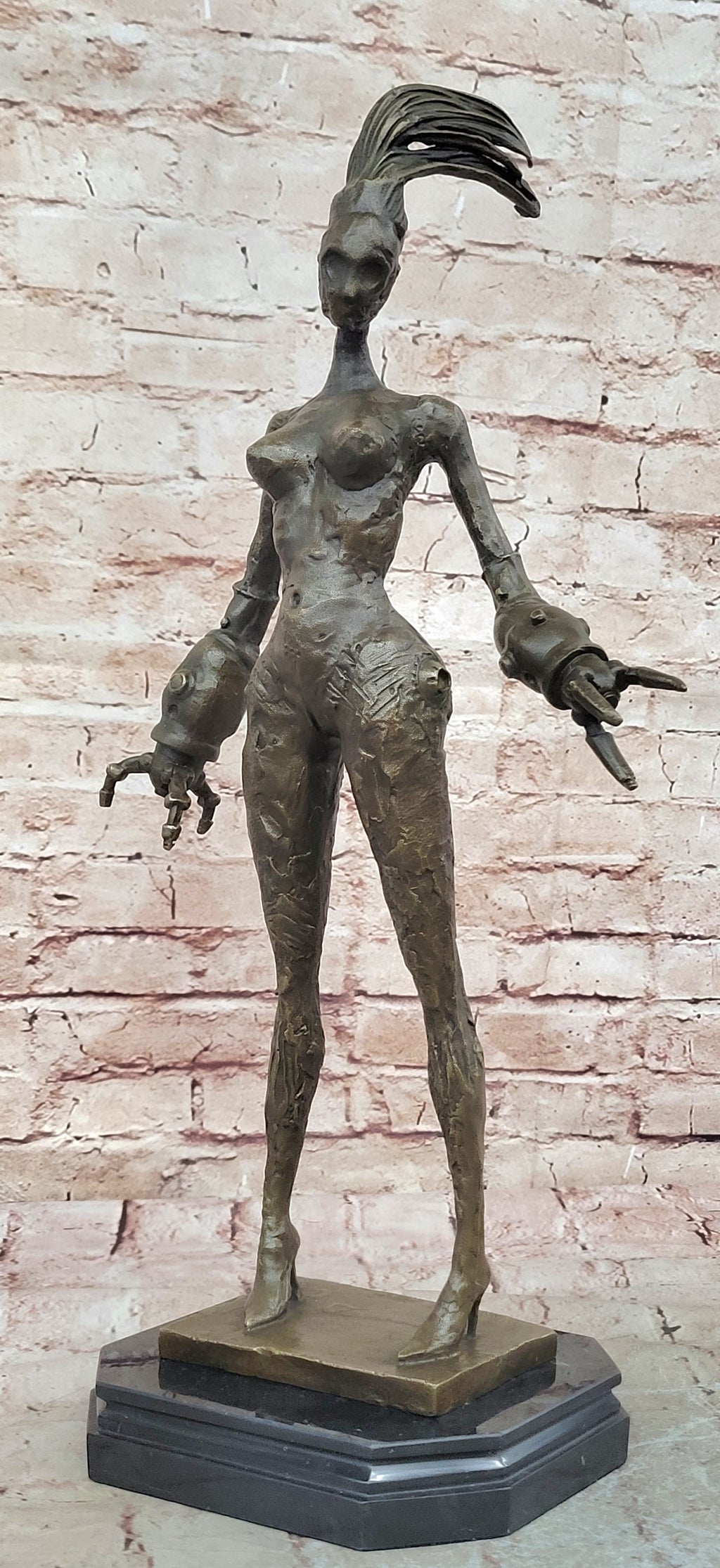 Crafted entirely from bronze using the meticulous lost wax method, this sculpture showcases exquisite craftsmanship and attention to detail. Its sleek appearance and intricate design make it a captivating addition to any art collection or space. Resting elegantly on a black marble base, the sculpture is not only visually striking but also exudes a sense of sophistication and artistic finesse.