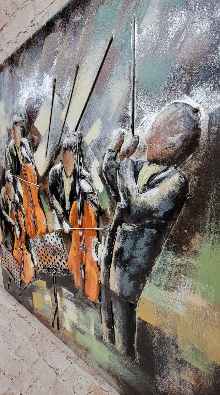 Each painting is hand-painted by skilled artists, ensuring that no two pieces are exactly alike. The bold, abstract composition features dynamic forms and harmonious colors that evoke the spirit of sound and movement, transforming any wall into a statement of artistic expression.