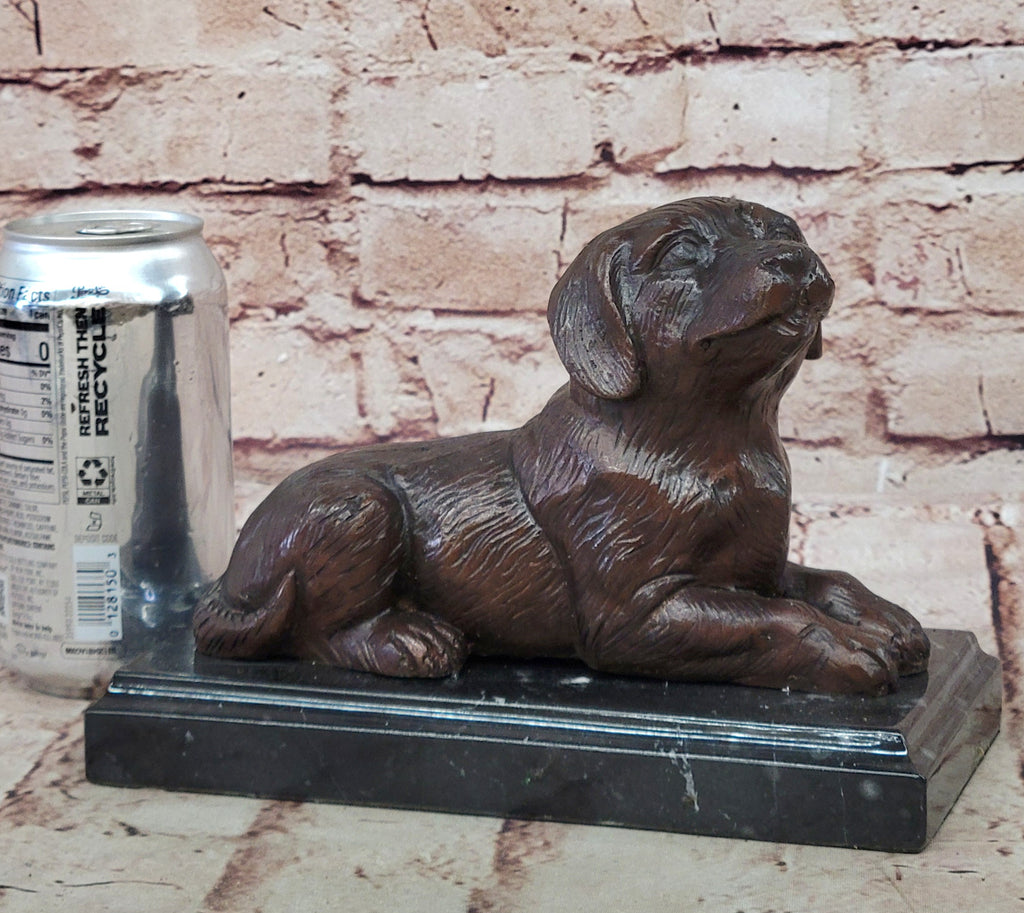 Created using the traditional lost-wax casting method, the sculpture features a rich dark brown patina that enhances its lifelike detail and depth. From the Labrador’s strong stance to the finely crafted contours of its body, the artistry reflects both skill and devotion to realism.