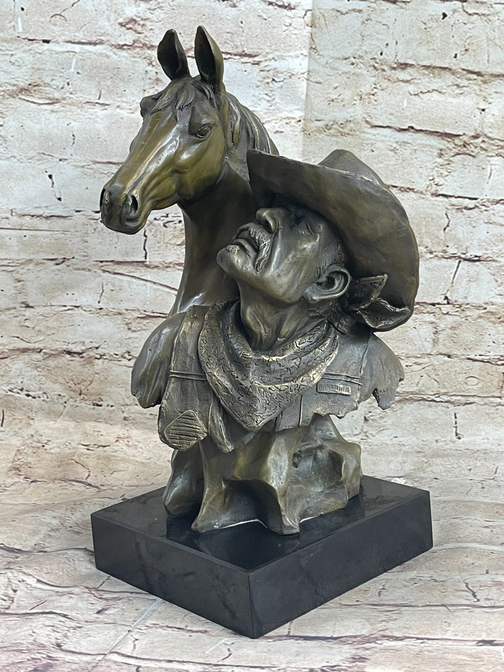 Capture the essence of unwavering companionship with the "Trusted Companions" bronze sculpture—a truly remarkable masterpiece that celebrates the unbreakable bond between man and horse.