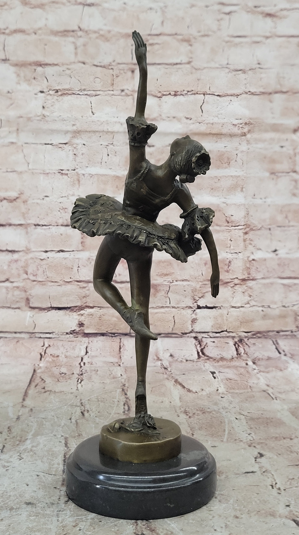 Crafted with meticulous attention to detail, this sculpture is a testament to the beauty and elegance of the ballet. Made from 100% bronze using the renowned "Lost Wax Method," it captures the intricacies of the prima ballerina's form and movements. The sculpture features a captivating brown patina finish, adding depth and dimension to the piece. Mounted on a sleek black marble base, it stands as a true work of art, ready to be admired and appreciated.