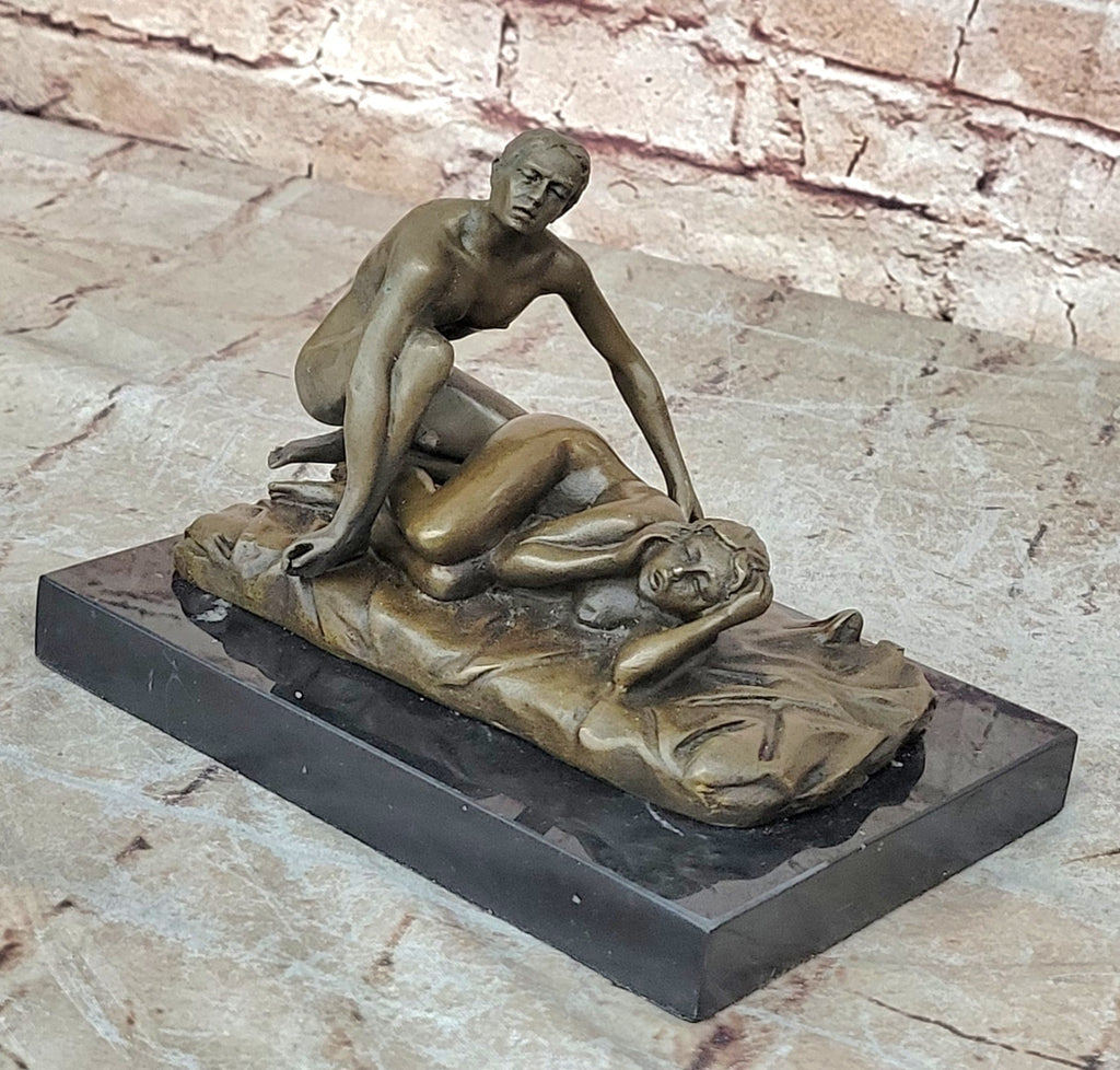 Experience the provocative allure of this remarkable bronze sculpture capturing the sensual encounter of a young couple. Crafted with utmost precision, this Vienna art object is made from the finest bronze, reflecting exceptional quality. The sculpture, designed by the esteemed artist Jean Patoue, presents a moment of great heated sex, immortalizing the intensity of desire and pleasure. Signed by the artist himself, this sculpture is an eye-catching centerpiece in any Vienna art sculpture collection. It showcases the passionate connection between an experienced partner and an inexperienced virgin, portraying endless longing and irresistible allure. This captivating bronze sculpture is a true must-have, an expression of profound desire that adds a unique touch to any art enthusiast's collection.