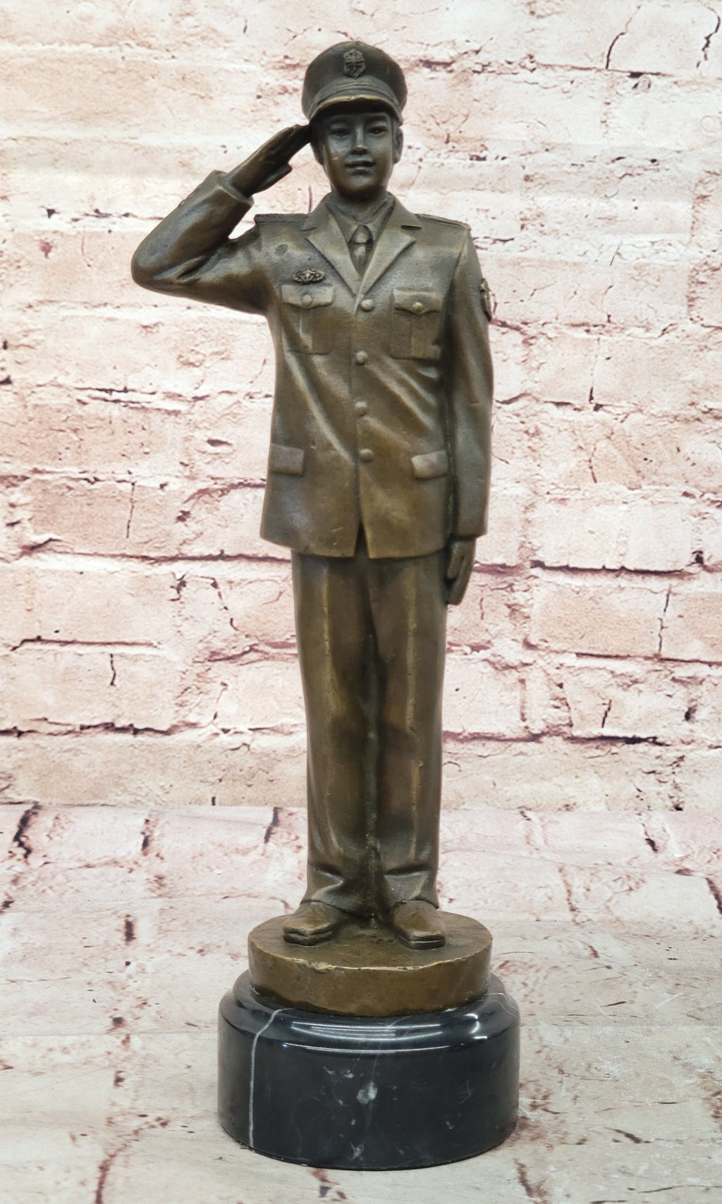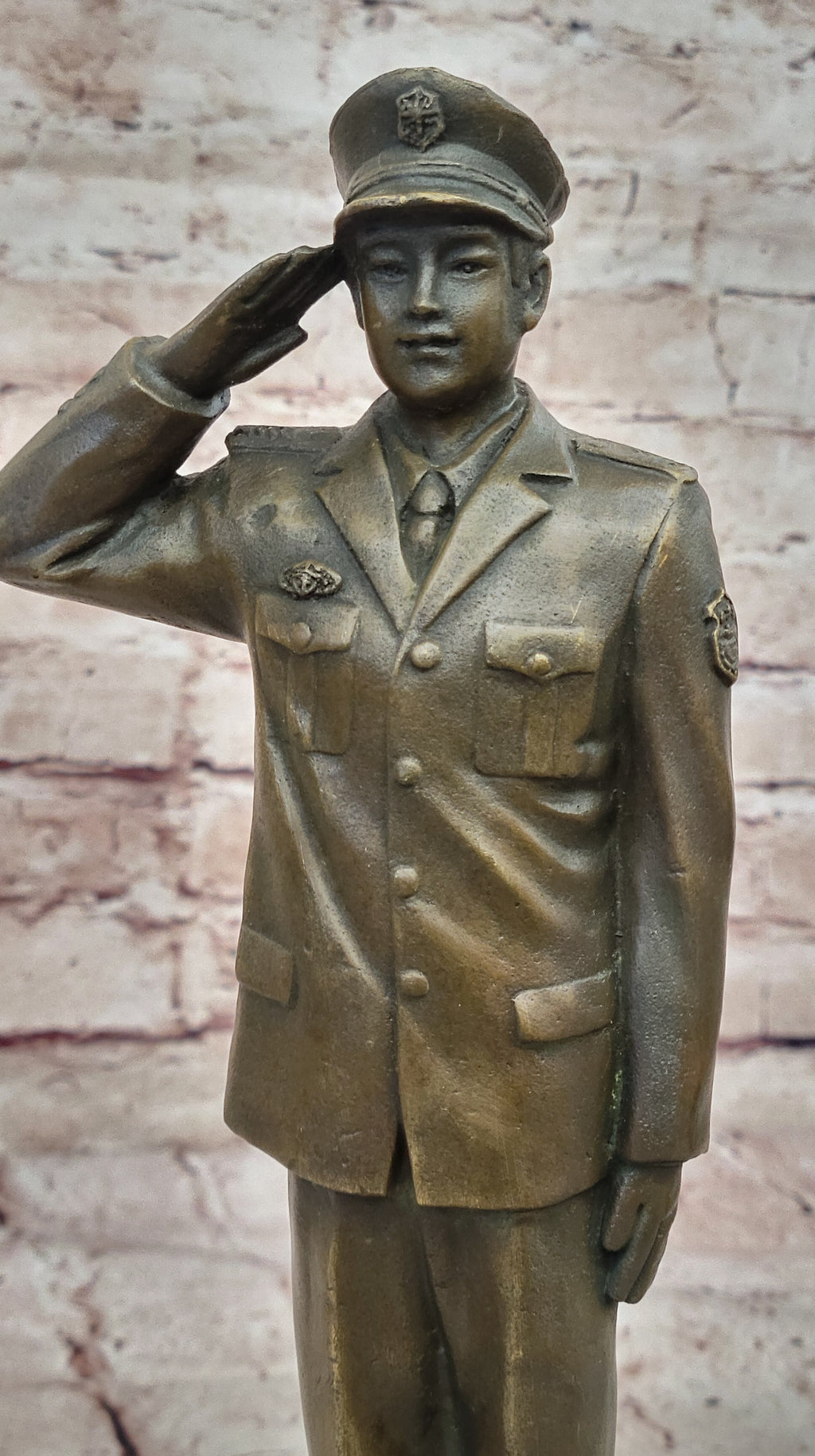 This finely handcrafted bronze statue of a Police Officer saluting was specially commissioned by European Bronze as part of the "Respect to All Officers in Uniform" project. Designed as a tribute to those who serve their communities with honor, this statue stands as a symbol of respect, integrity, and duty. The officer, captured mid-salute, reflects the dedication and bravery of those who have devoted their lives to protecting others.