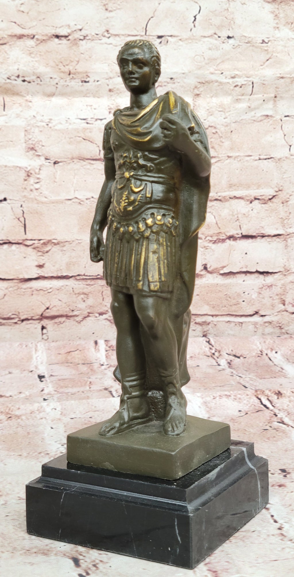 The figurine is mounted on a solid black marble base, providing both visual contrast and a sturdy foundation. Whether displayed in a study, library, or office, this signed original stands as a powerful symbol of leadership, legacy, and the grandeur of ancient Rome. It is a timeless collectible for history enthusiasts, art lovers, and admirers of classical antiquity.
