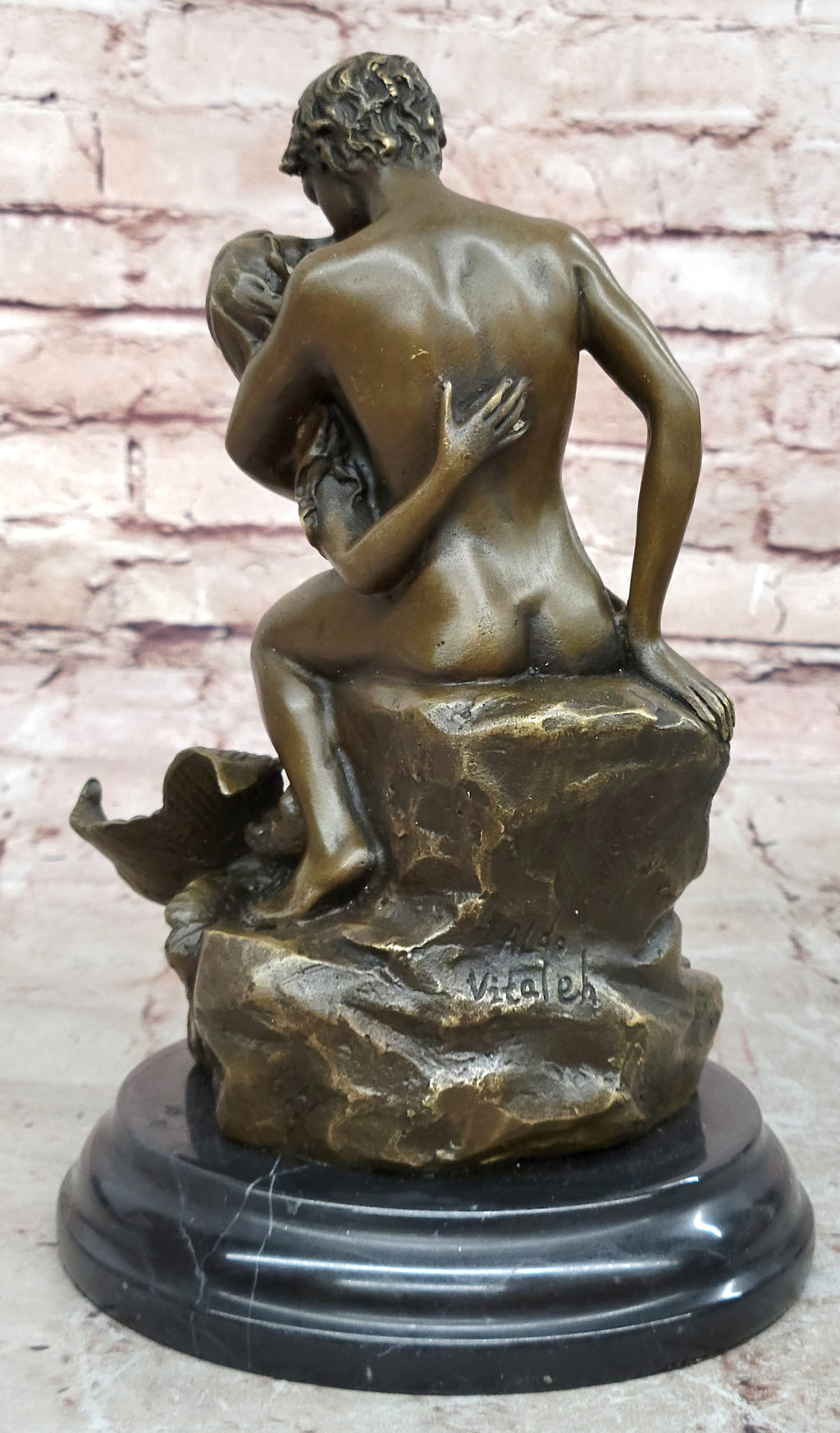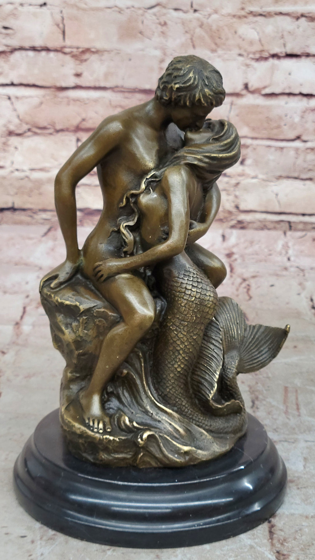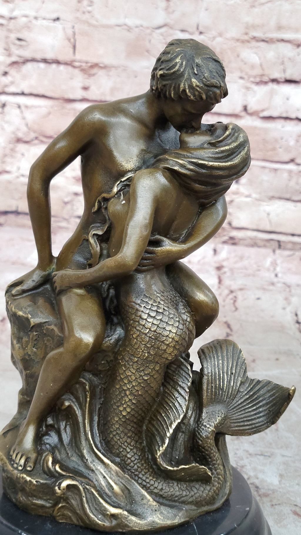 Meticulously crafted using the ancient lost-wax casting method, this sculpture is a testament to the enduring artistry and skill of the sculptor. The rich brown patina finish accentuates the fine details of the artwork, adding depth and character to the piece. Mounted on a sturdy black marble base, the sculpture stands as a poignant reminder of the enduring power of love and the inherent beauty of the human spirit. This captivating masterpiece is a perfect addition to any art collection, resonating with those who appreciate the timeless allure of folklore and the depths of human emotion.
