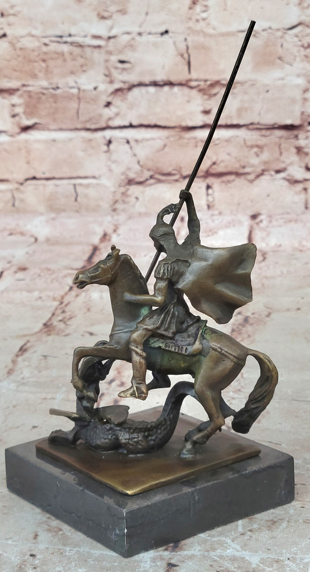 Crafted with meticulous attention to detail, the sculpture brings to life the gallant knight in shining armor atop a majestic horse. The artist Milo's signature ensures the authenticity and quality of this stunning piece. The sculpture stands as a testament to the timeless allure of tales from the past and the enduring fascination with knights in armor. Whether displayed as a symbol of courage and adventure or as a collector's item, this Knight Bronze sculpture adds a touch of medieval magic to any space.