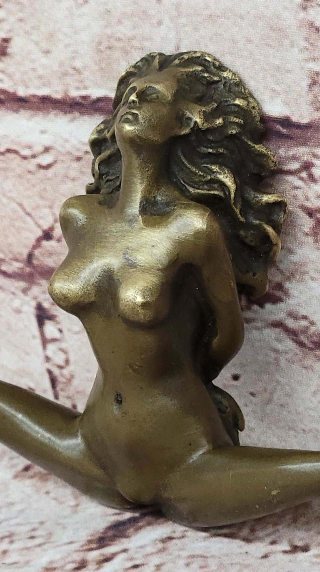 Created with meticulous care, this sculpture is crafted by hand using the esteemed "Lost Wax Method." This technique allows for an extraordinary level of detail and precision, ensuring that every curve and contour of the pin-up girl's form is impeccably captured. The two-tone brown patina adds a touch of classic elegance to the sculpture, making it a versatile addition to any art collection.