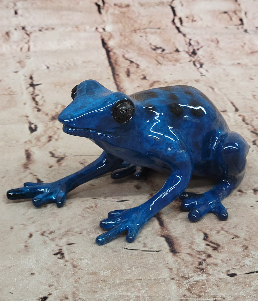 Signed and numbered by the artist Marius, this sculpture is a true collector's item, offering both authenticity and exclusivity. The use of blue and black enamel enhances the sculpture's visual appeal, adding depth and contrast to the frog's intricate features. The vibrant colors create a striking contrast against the rich bronze backdrop, capturing the eye and inviting closer inspection.