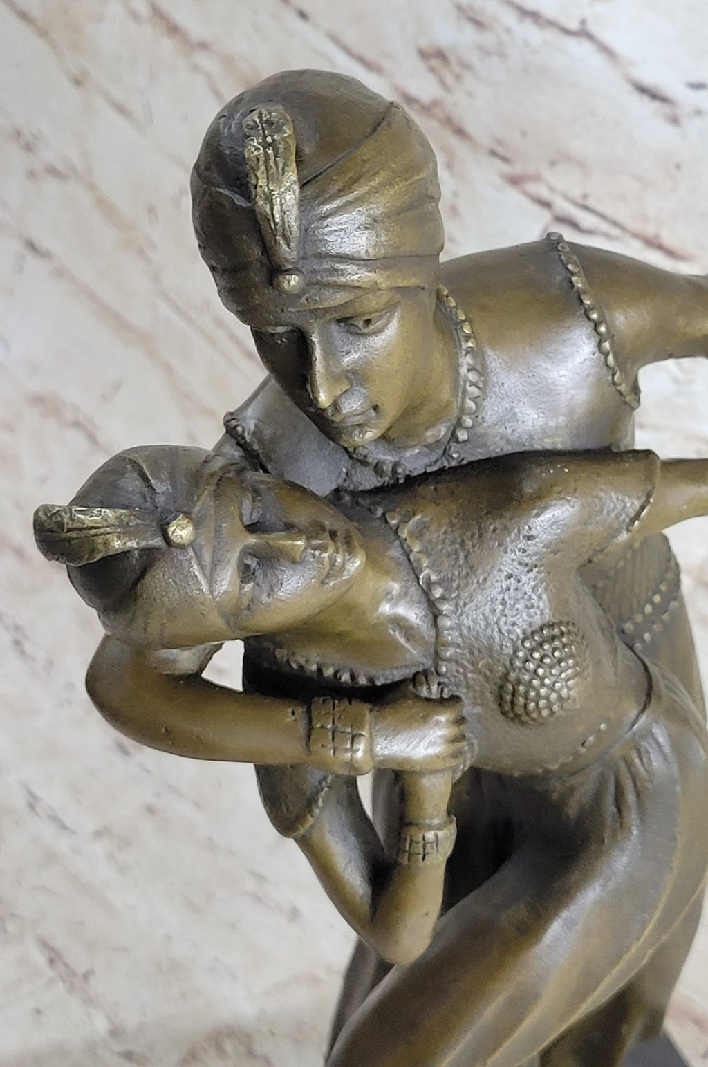 The "Persian Dancers" sculpture invites you to witness the beauty of movement frozen in time. Whether displayed in your home or as part of an art collection, it serves as a timeless testament to the power of dance and the artistry of bronze sculpture. This exquisite piece captures the essence of passion, grace, and artistic expression, making it a perfect addition to any space.