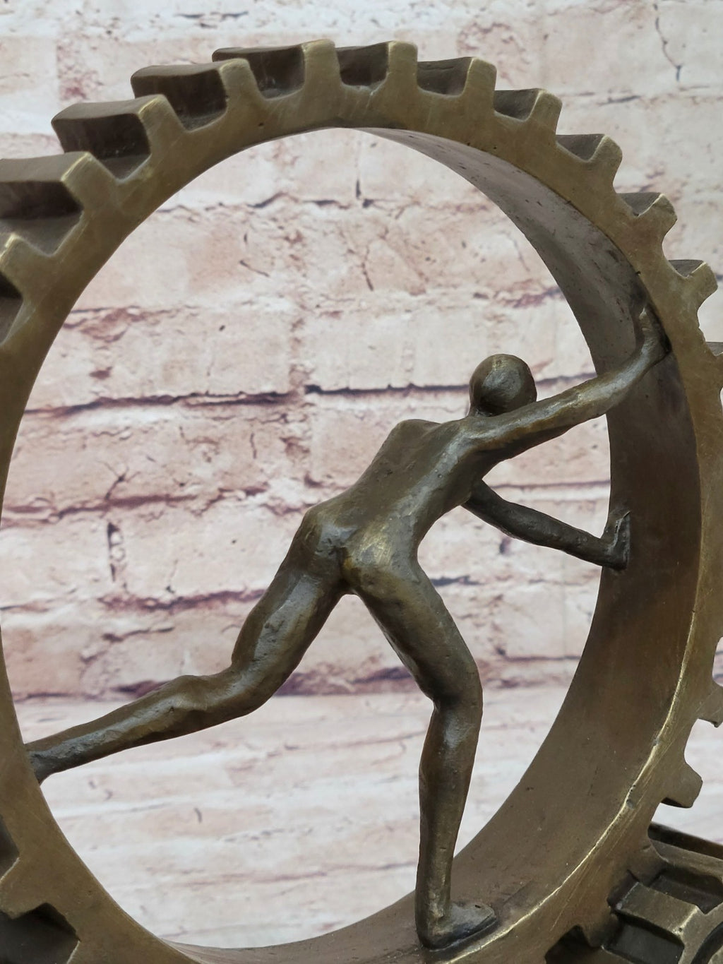 Embrace the spirit of victory and triumph with this exceptional bronze sculpture. Blending the artistry of the past with modern aesthetics, it brings a sense of strength and inspiration to any environment. Ideal for home or office decoration, this Athlete Pushing a Wheel bronze statue is a testament to fine craftsmanship and artistic excellence, making it a cherished addition for art enthusiasts and collectors alike.