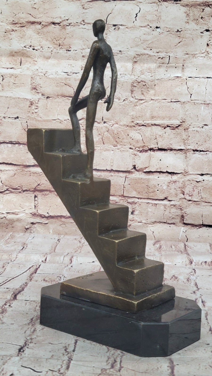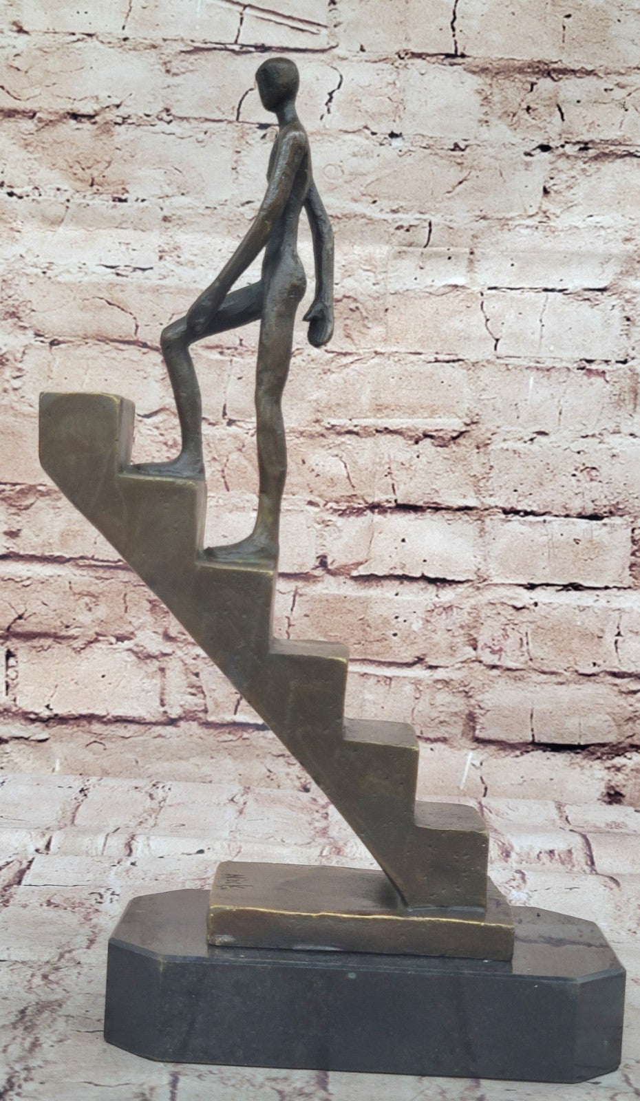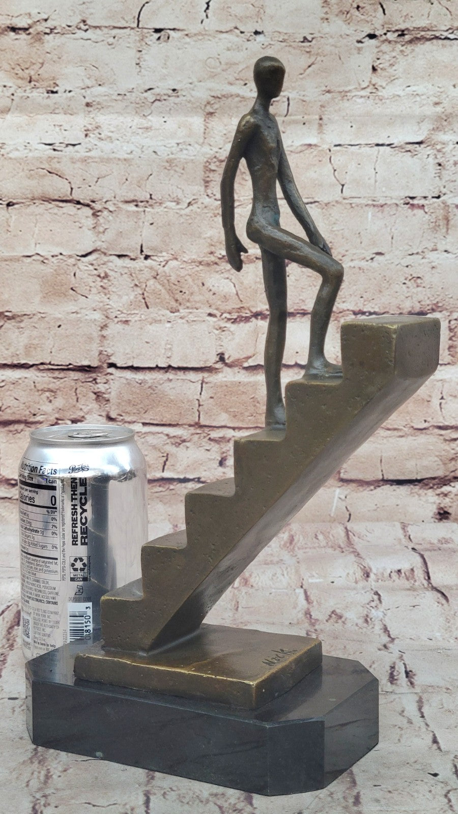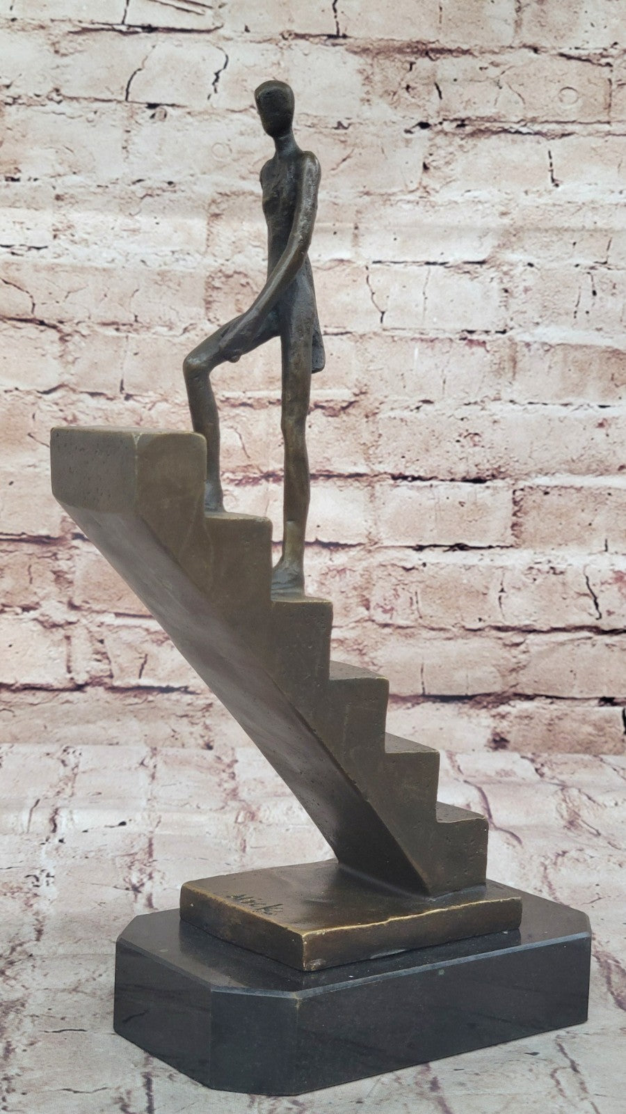 Resting on a sleek black marble base, this signed original artwork by Mario Nick is not just a sculpture—it's a statement piece that sparks curiosity and contemplation. Whether displayed in a gallery, office, or home setting, "Climbing Stairs" invites viewers to engage with the artistic journey, inspiring them to embrace change, embrace challenges, and strive for new heights in their own lives.