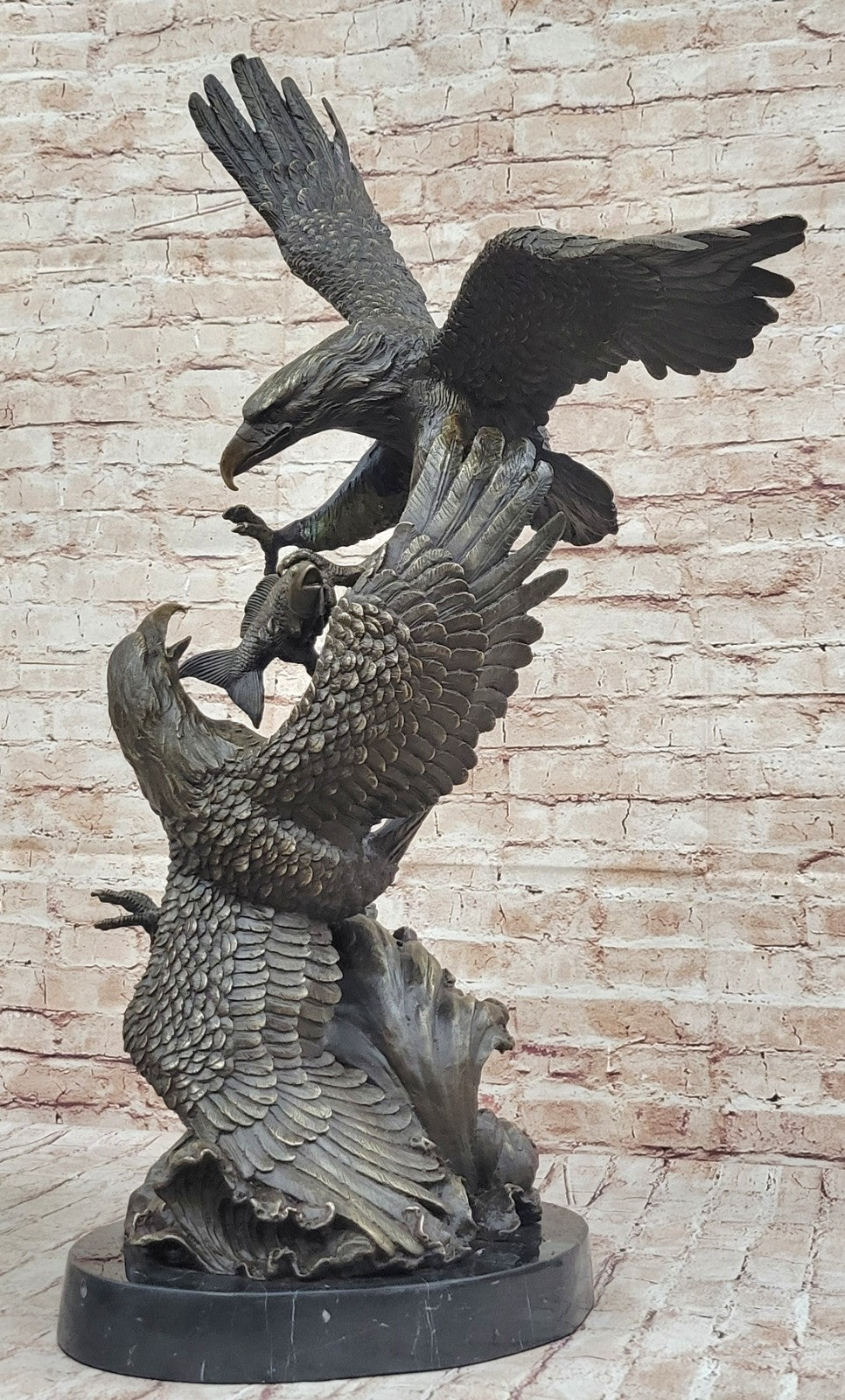 This stunning bronze sculpture vividly captures the fierce and unrelenting nature of eagles as two magnificent birds engage in a battle for dominance. The sculpture presents a powerful scene where one eagle, poised to assert its superiority, is on the verge of driving its talons into its adversary. The intensity and drama of the struggle are brought to life with intricate detailing, showcasing the raw determination of these majestic creatures.
