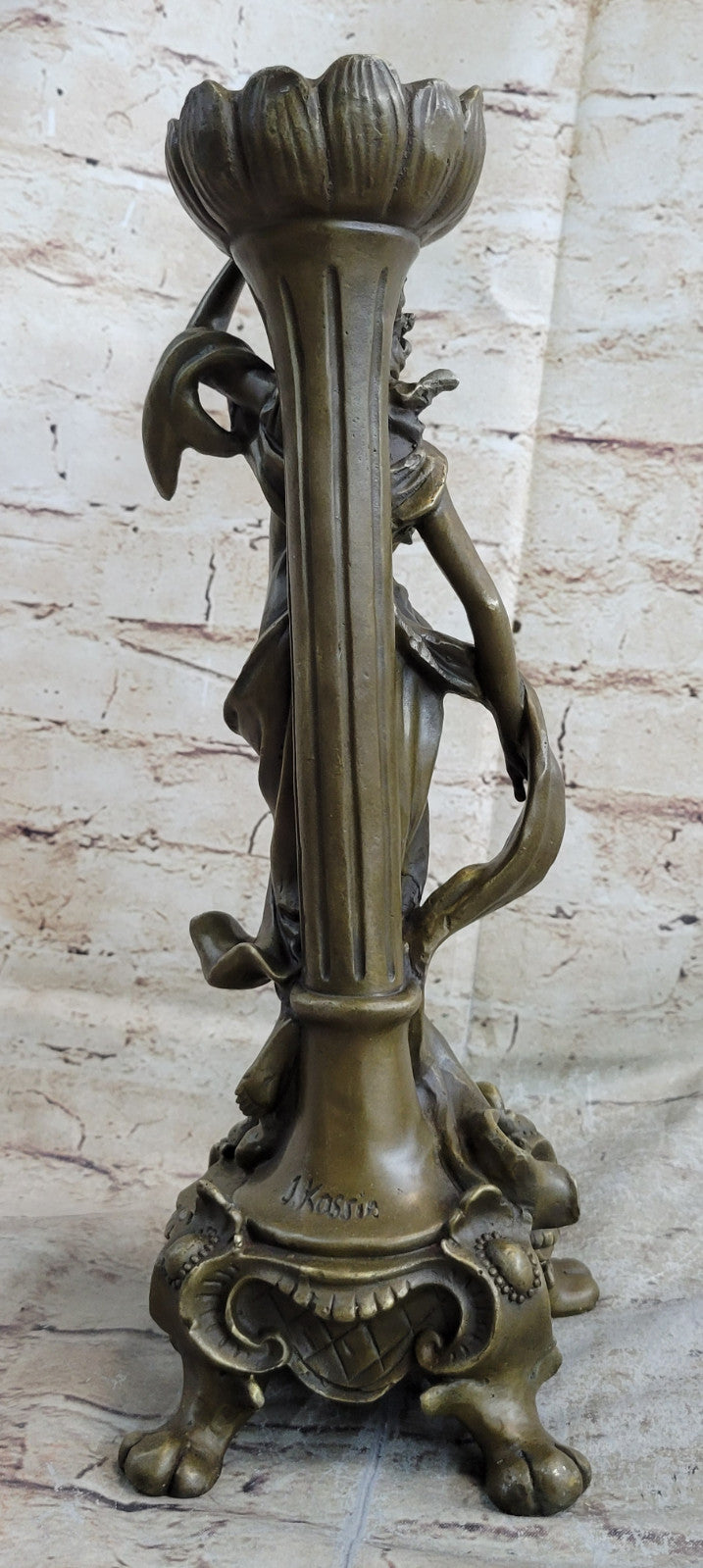 Beyond its captivating aesthetics, this candelabra is as functional as it is beautiful, offering a stunning blend of artistry and practicality. The substantial weight and impeccable craftsmanship guarantee not only its visual appeal but also its robustness and endurance for years to come. Authentically signed by the celebrated artist Kassin, this collectible treasure exudes an air of exclusivity and refinement that elevates any setting it graces. Embrace the elegance and timeless allure of this exquisite bronze candelabra, a testament to the exquisite fusion of art and functionality.