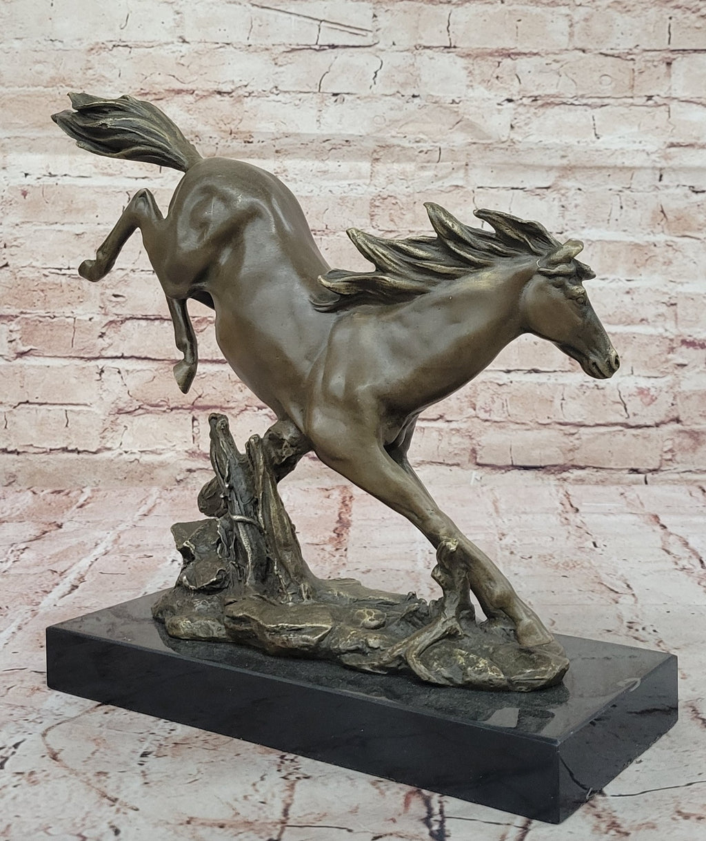 Mounted on a polished green marble base, the sculpture gains an extra touch of sophistication, contrasting beautifully with the bronze. Milo’s signature adorns this work, affirming its authenticity and quality. This piece serves as a beautiful reminder of the horse's noble and free spirit and makes an ideal centerpiece for any collection, home, or office setting.