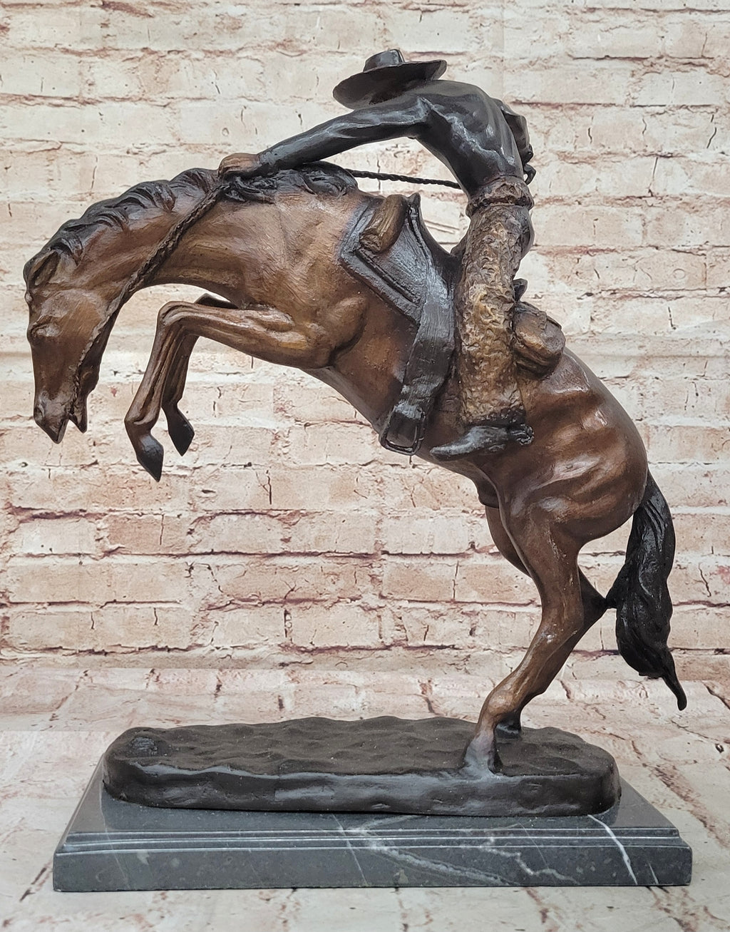 Own a piece of American history with the Signed Frederic Remington “Wooly Chaps” Bronze Sculpture, a stunning tribute to the rugged spirit of the Old West. Handcrafted using the Lost Wax Casting Method, this limited-edition masterpiece captures the raw energy of a cowboy taming his horse, featuring Remington’s signature wooly chaps, textured horsehair, and lifelike movement.