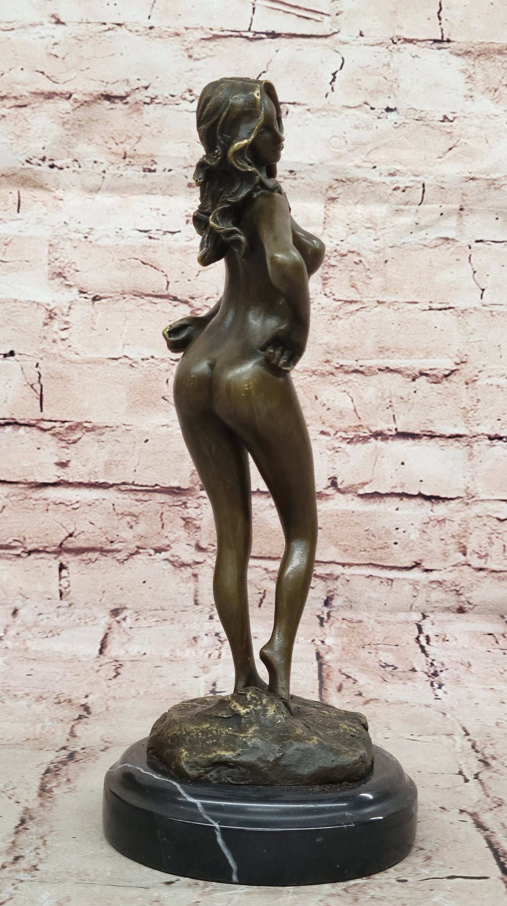 Meticulously crafted using the ancient and revered lost-wax casting technique, this sculpture is a testament to the artist's skill and dedication. Every delicate curve and contour of the woman's figure is meticulously captured, breathing life into the bronze medium. The intricate details of her form and the flowing lines evoke a sense of timelessness and eternal charm.