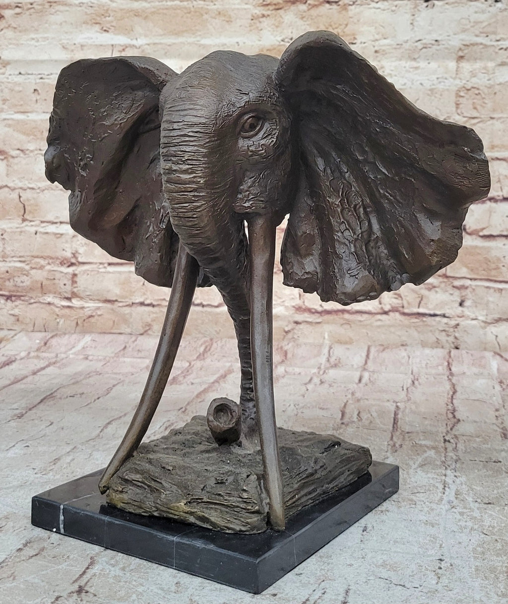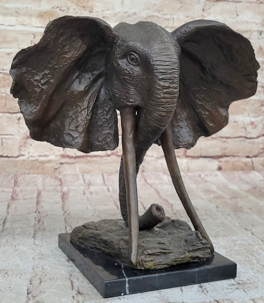 The sculpture rests atop a bronze base, providing a sturdy and elegant foundation that complements the piece's wild beauty. Signed by the renowned artist Milo, this sculpture is not only a remarkable work of art but also a testament to the artist's talent and craftsmanship. Whether displayed in a home, office, or gallery, this elephant sculpture is sure to draw admiration and become a cherished focal point.