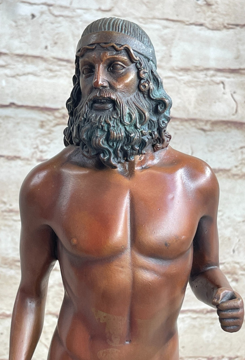 Bring the power and majesty of Greek mythology into your space with The Artemision Bronze, a stunning sculpture representing Poseidon or Zeus, meticulously handcrafted in bronze. This remarkable piece captures the god’s commanding presence, showcasing fine details that convey strength, authority, and timeless elegance. Signed by the talented artist Milo, this sculpture is both a collectible masterpiece and a striking decorative statement.