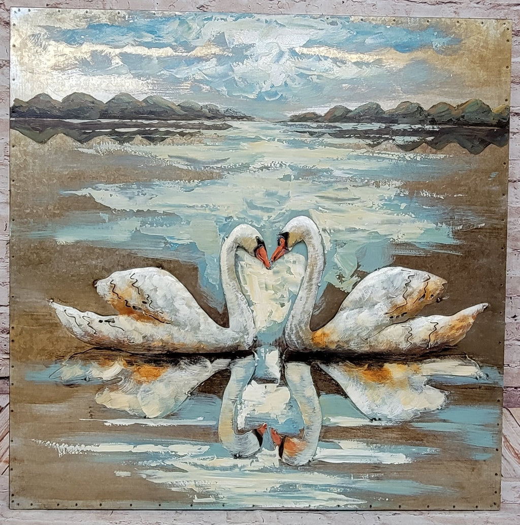This striking wall art features two swans three Dimensional Fine Art artwork