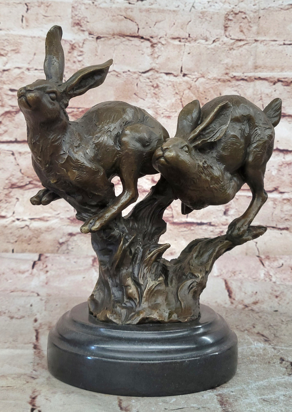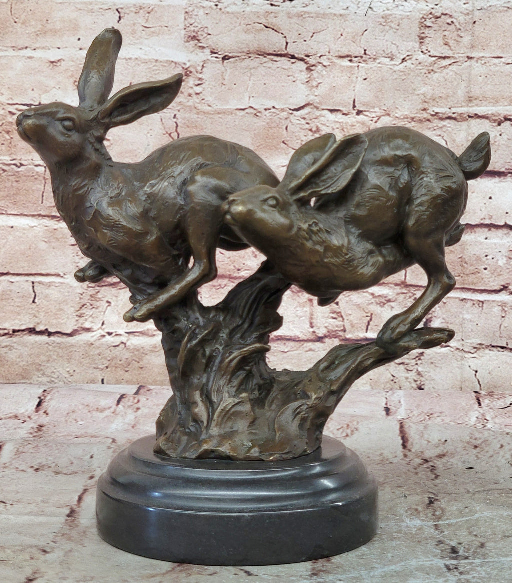 This bronze sculpture, masterfully crafted using the "Lost Wax Method," captures the hare's dynamic spirit and unique behaviors. Adorned with a captivating two-tone brown patina, it rests upon an elegant black marble base. The sculpture serves as an excellent gift choice, particularly in spring and around Easter, encapsulating the vitality of the hare's natural world. Signed by the artist Milo, this sculpture stands as a tribute to both the intricate beauty of nature and the skill of the artist who brought it to life.
