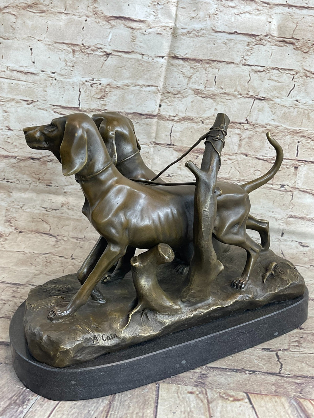 Crafted using the time-honored lost-wax casting method, this sculpture is a testament to the artist's dedication to preserving the essence of these majestic dogs. The rich brown patina finish not only adds depth to the sculpture but also ensures its long-lasting beauty. Mounted on a sleek black marble base, this artwork seamlessly blends classic artistry with a touch of modern sophistication.