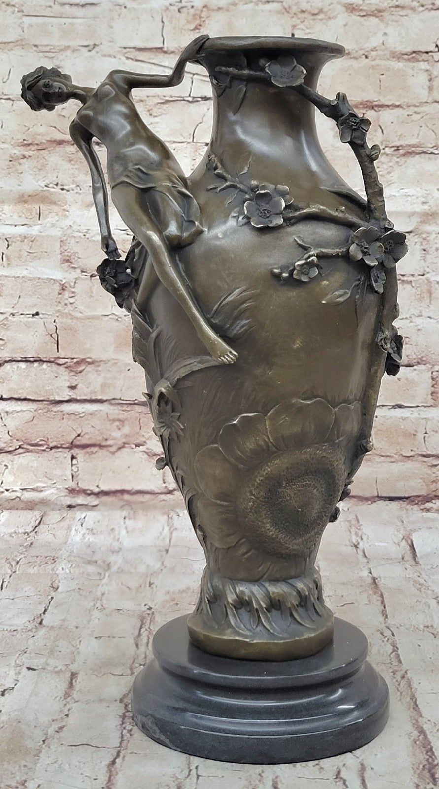 This unique piece can serve as a flower pot or simply as an eye-catching addition to your home decor. Crafted from 100% bronze and finished with a rich brown patina, the sculpture showcases the artist's meticulous craftsmanship. The use of the traditional lost wax method ensures high quality and detail, adding to the vase's timeless appeal.