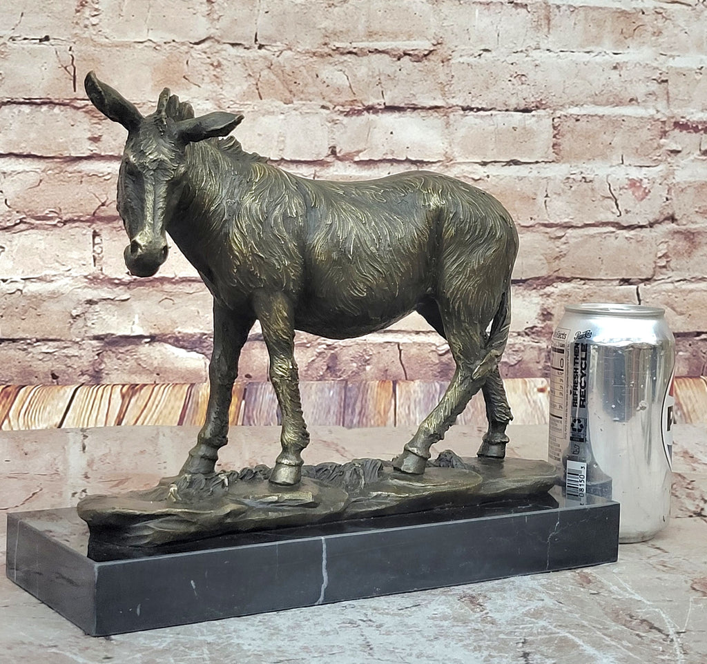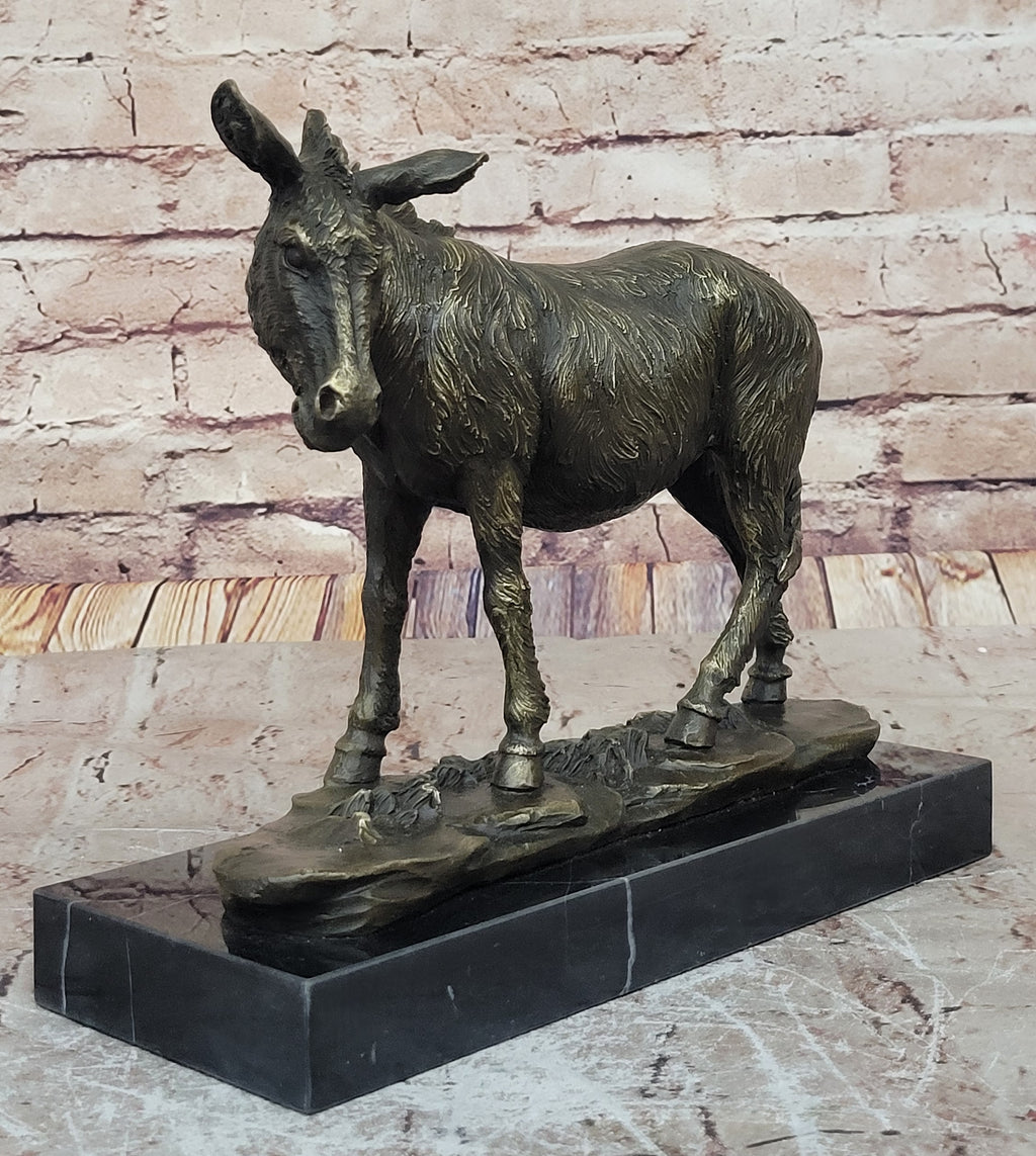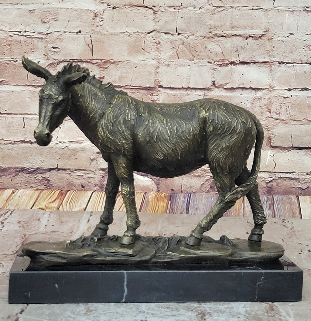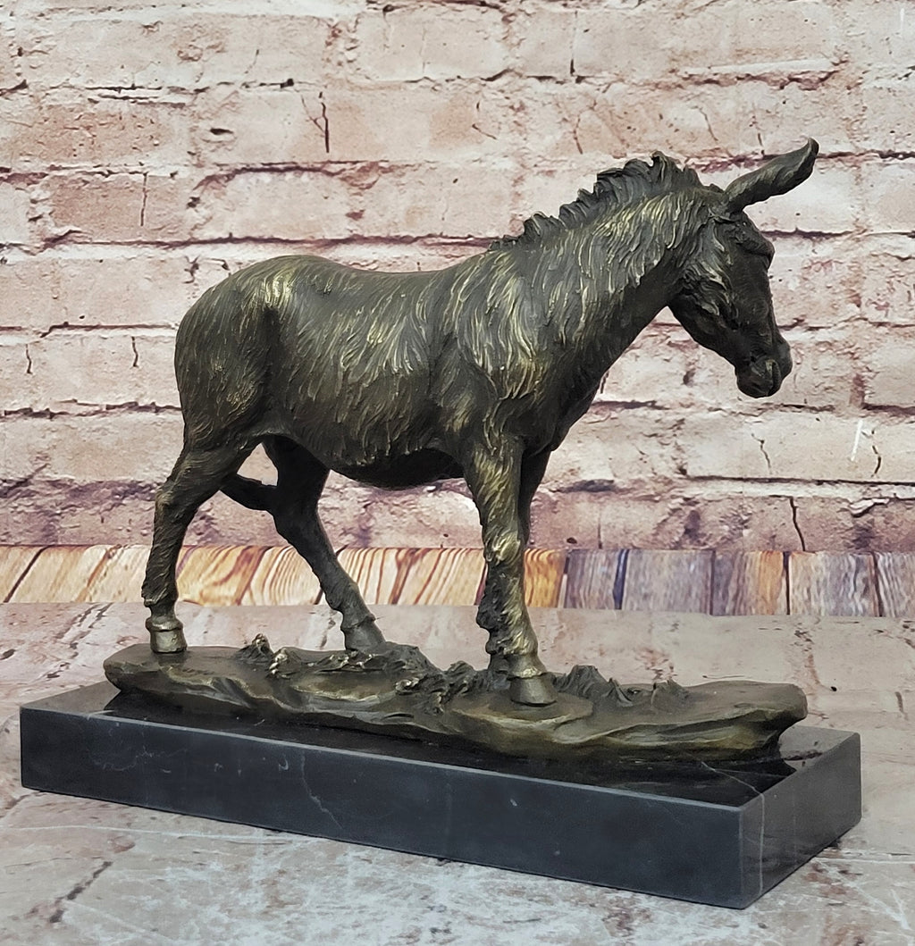 Crafted with the meticulous lost-wax casting technique, this sculpture preserves every detail of the donkey's graceful posture and expressive features. The brown patina finish not only enhances its visual allure but also contributes to its long-lasting preservation. Poised on a black oval-shaped marble base, the sculpture becomes a harmonious blend of artistic vision and natural beauty. The inclusion of the artist Barye's signature adds a touch of quality, underscoring the sculptor's dedication to capturing the nuances of the animal kingdom.