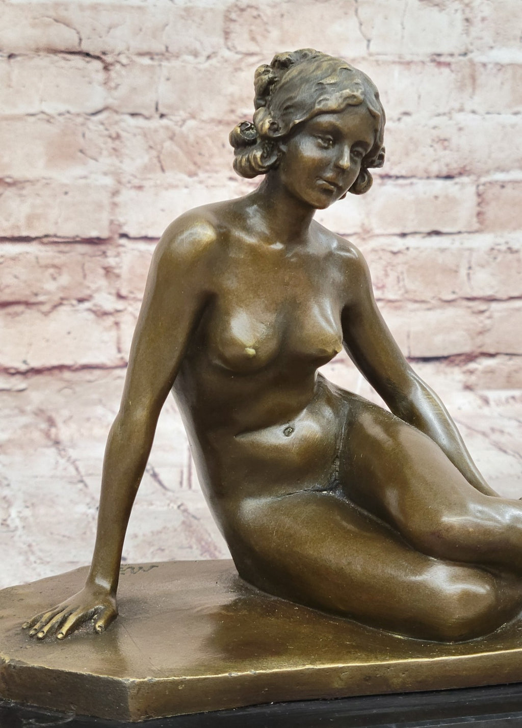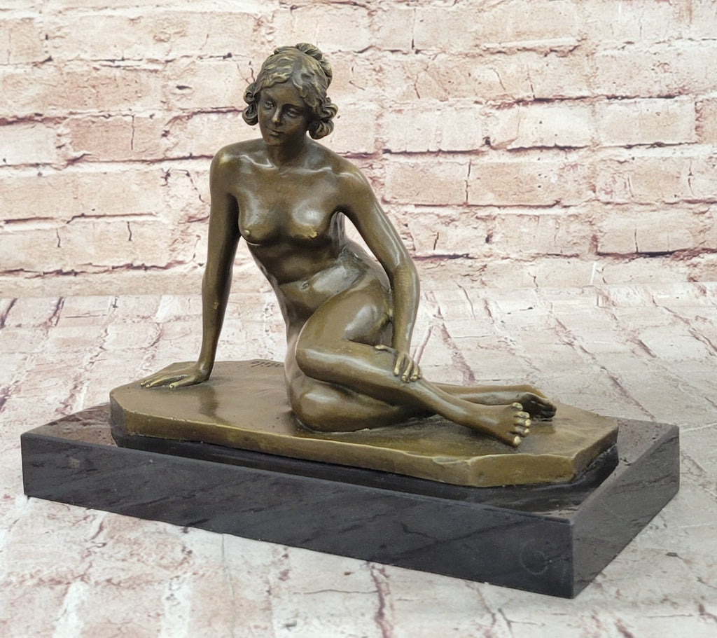 Celebrate elegance and allure with this Vintage Art Nouveau Bronze & Marble Nude Victorian Lady Sculpture. Crafted using the Lost Wax Method, the sculpture captures a confident nude figure in a provocative yet graceful pose, enhanced by a rich brown patina. Mounted on a black marble base, it adds sophistication to any collection or display. A striking combination of classical artistry and contemporary expression, perfect for collectors of fine bronze sculptures.
