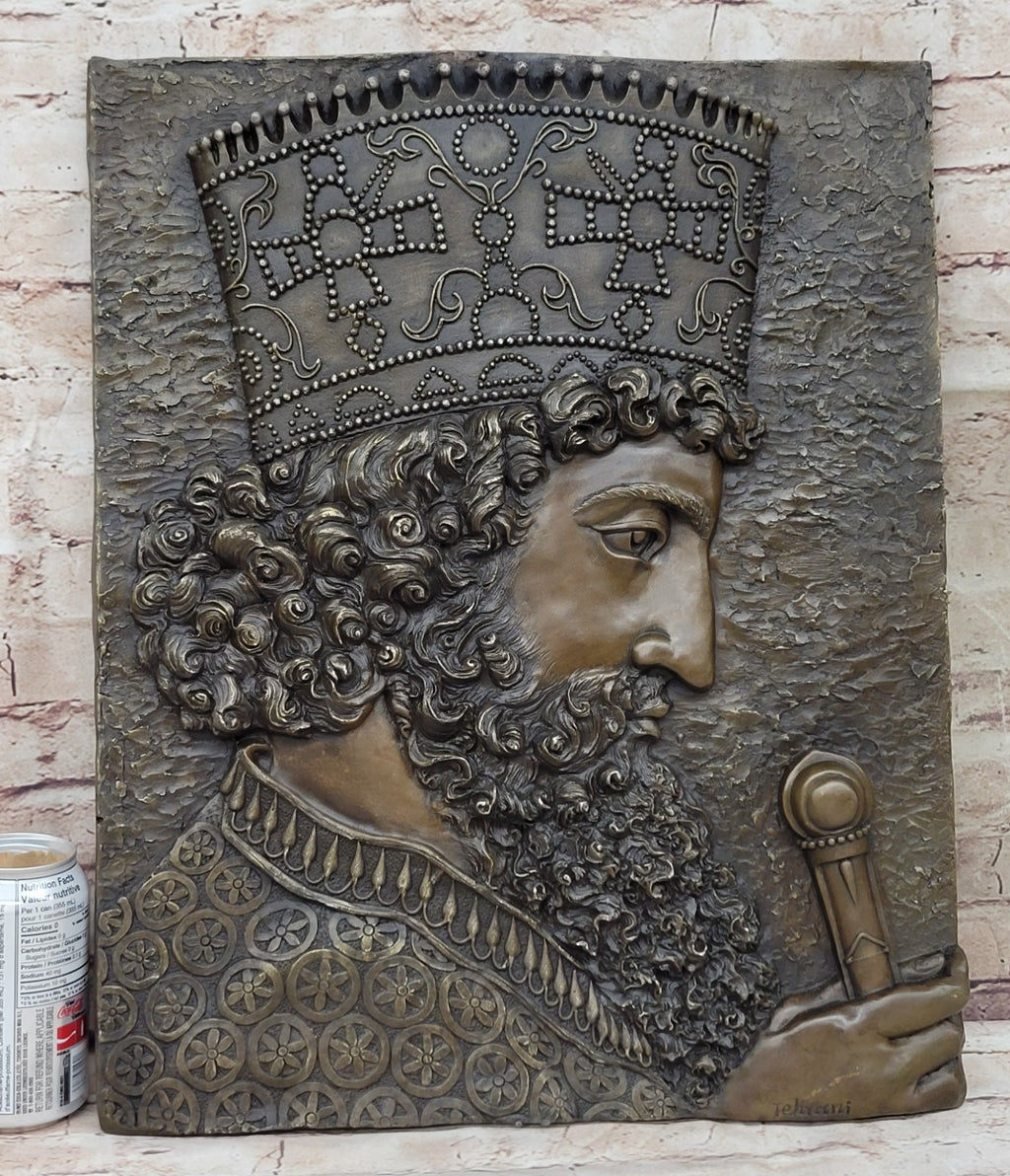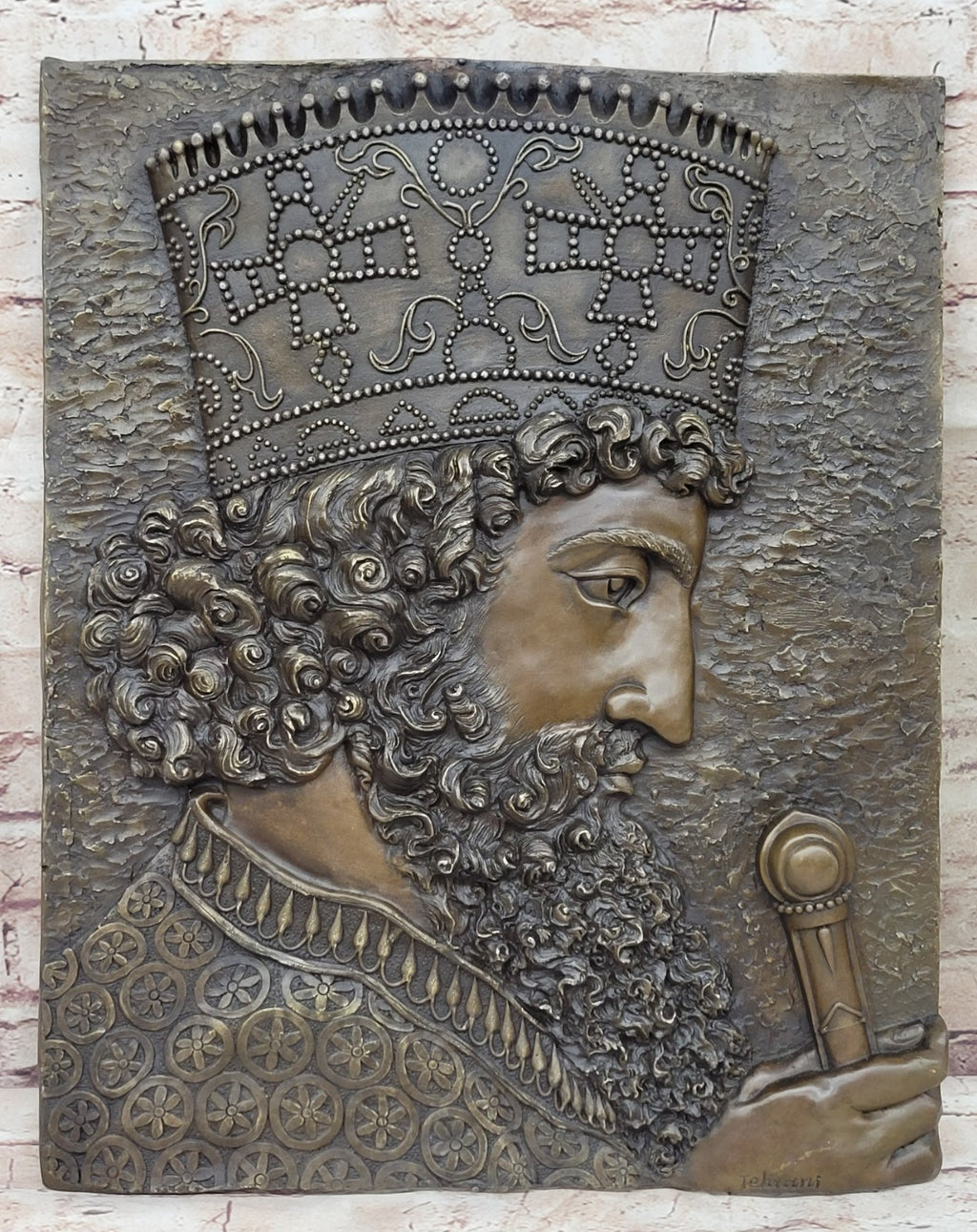 Display this resplendent bronze artwork proudly as a symbol of strength and power, reminiscent of the great king's enduring legacy. The sculpture bears the signature of the talented artist Tehrani, attesting to its craftsmanship and uniqueness. Embrace the majesty of Cyrus the Great in your space and relive the rich heritage of the Persian Empire through this awe-inspiring masterpiece.