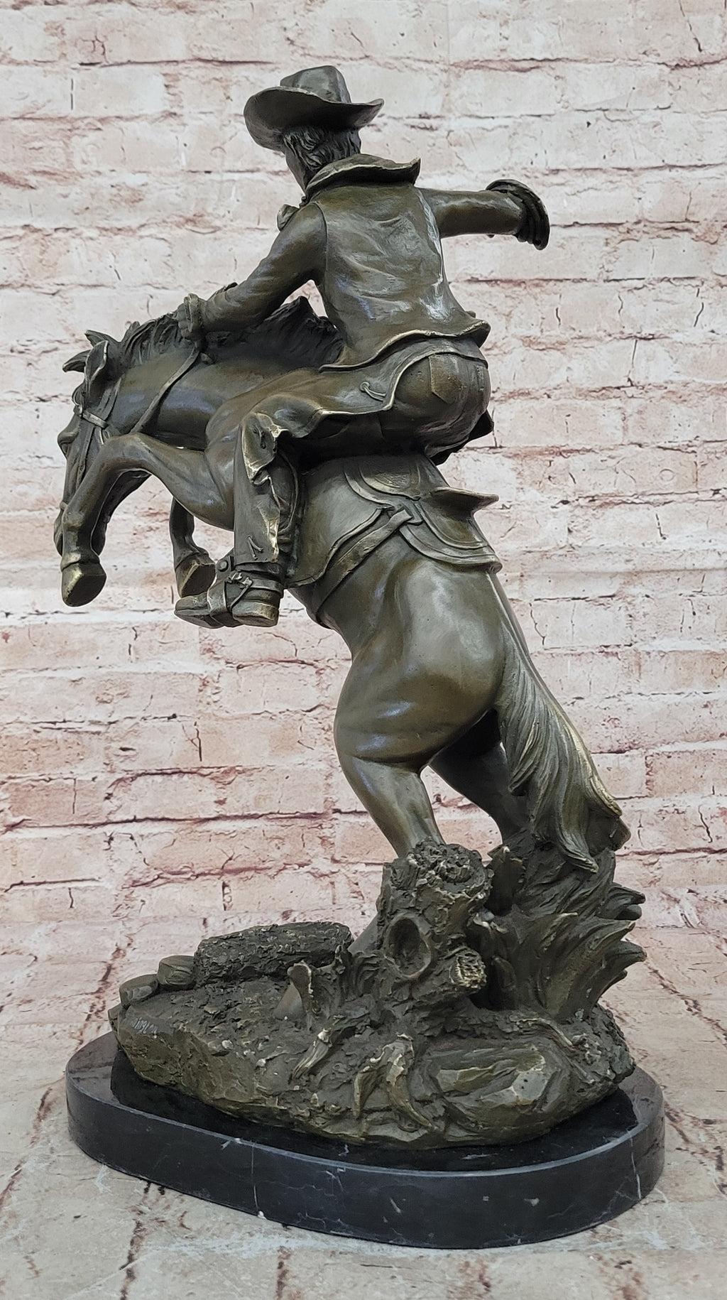 Embrace the thrill and resilience of the cowboy's struggle through this extraordinary bronze masterpiece. Perfectly rendered through the esteemed "Lost Wax Method," it serves as a testament to Remington's artistic vision and his ability to immortalize the essence of the American West. Ideal for collectors and enthusiasts alike, this sculpture transports you to a bygone era of bravery and determination.